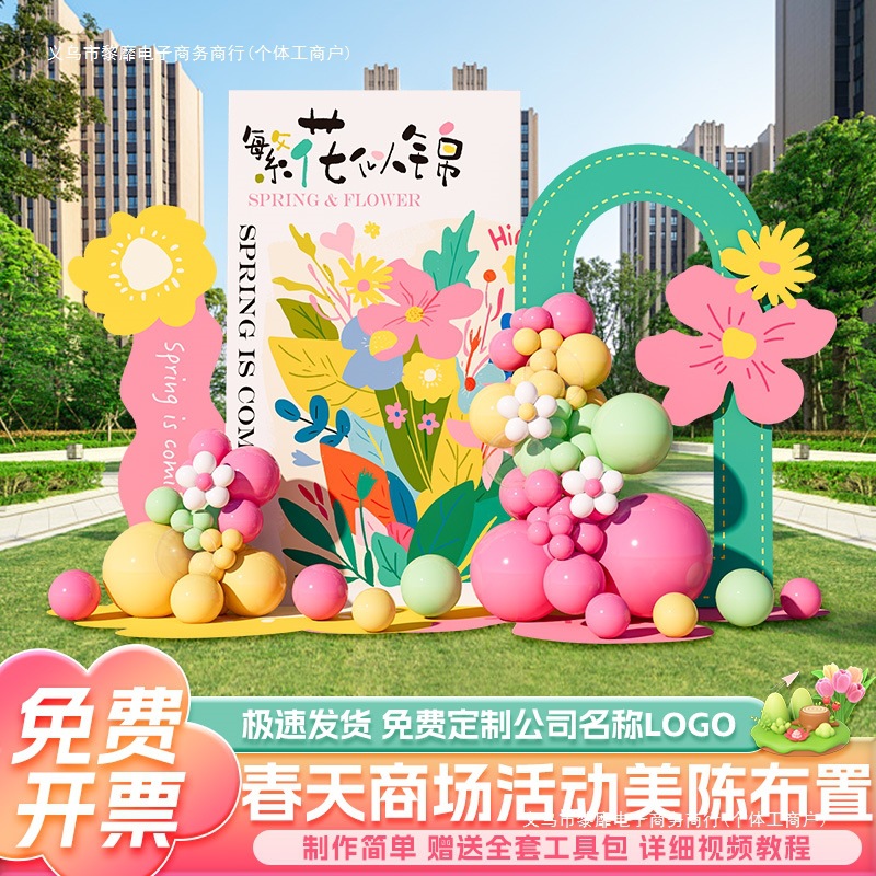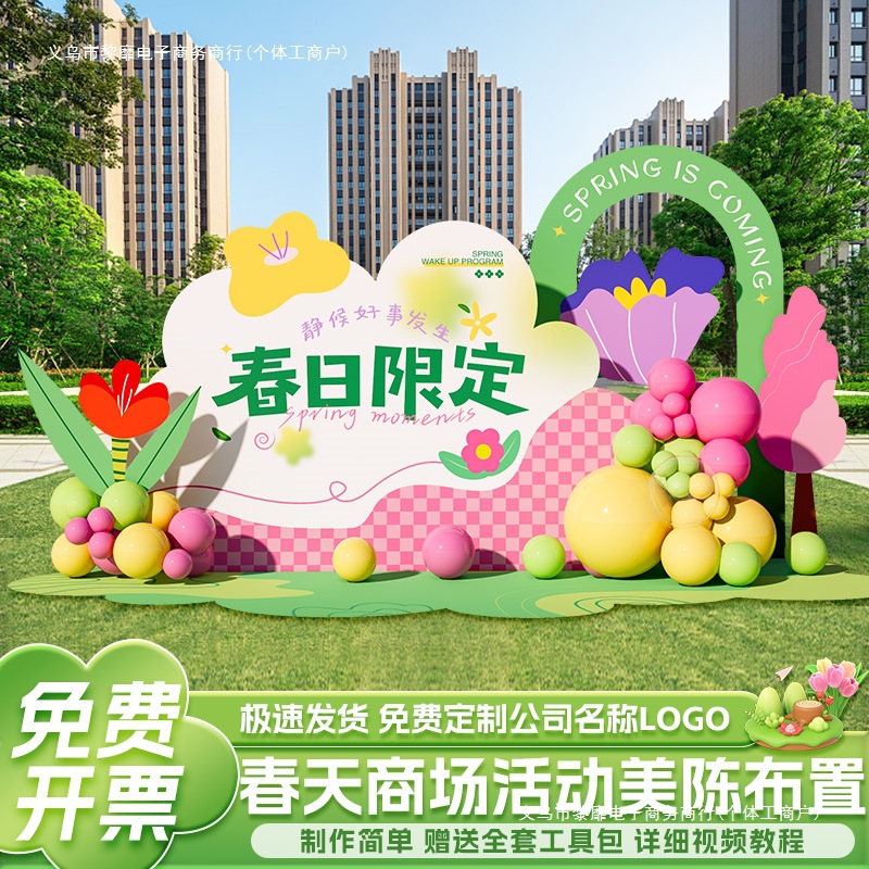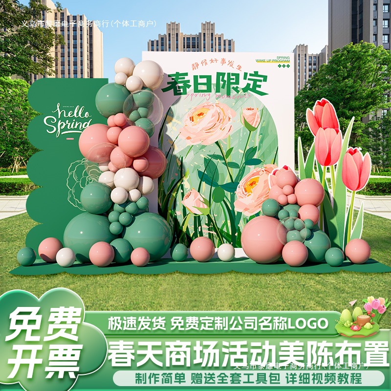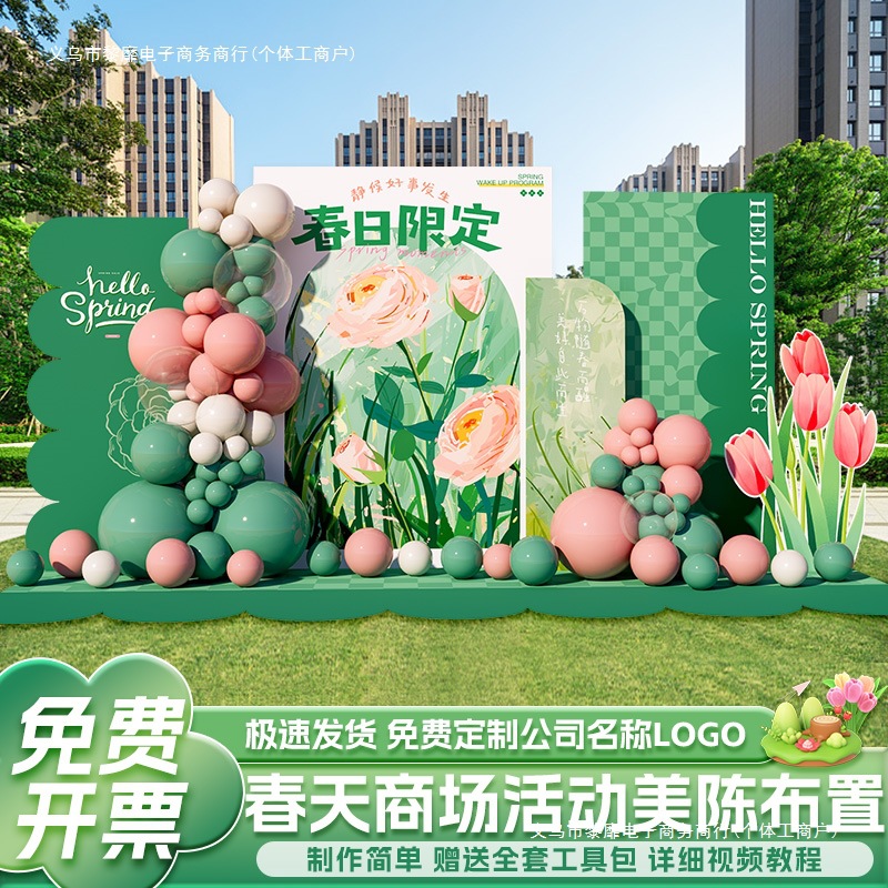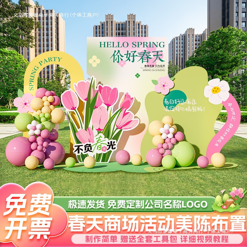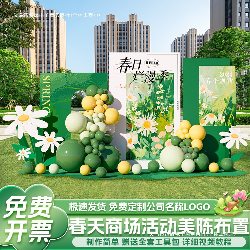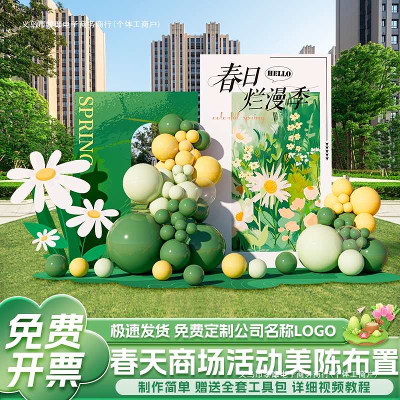 봄 봄 장면 레이아웃 장식 분위기 쇼핑몰 상점 식목일 야외 서명 배경 벽 패널 사용자 정의스토어 가기