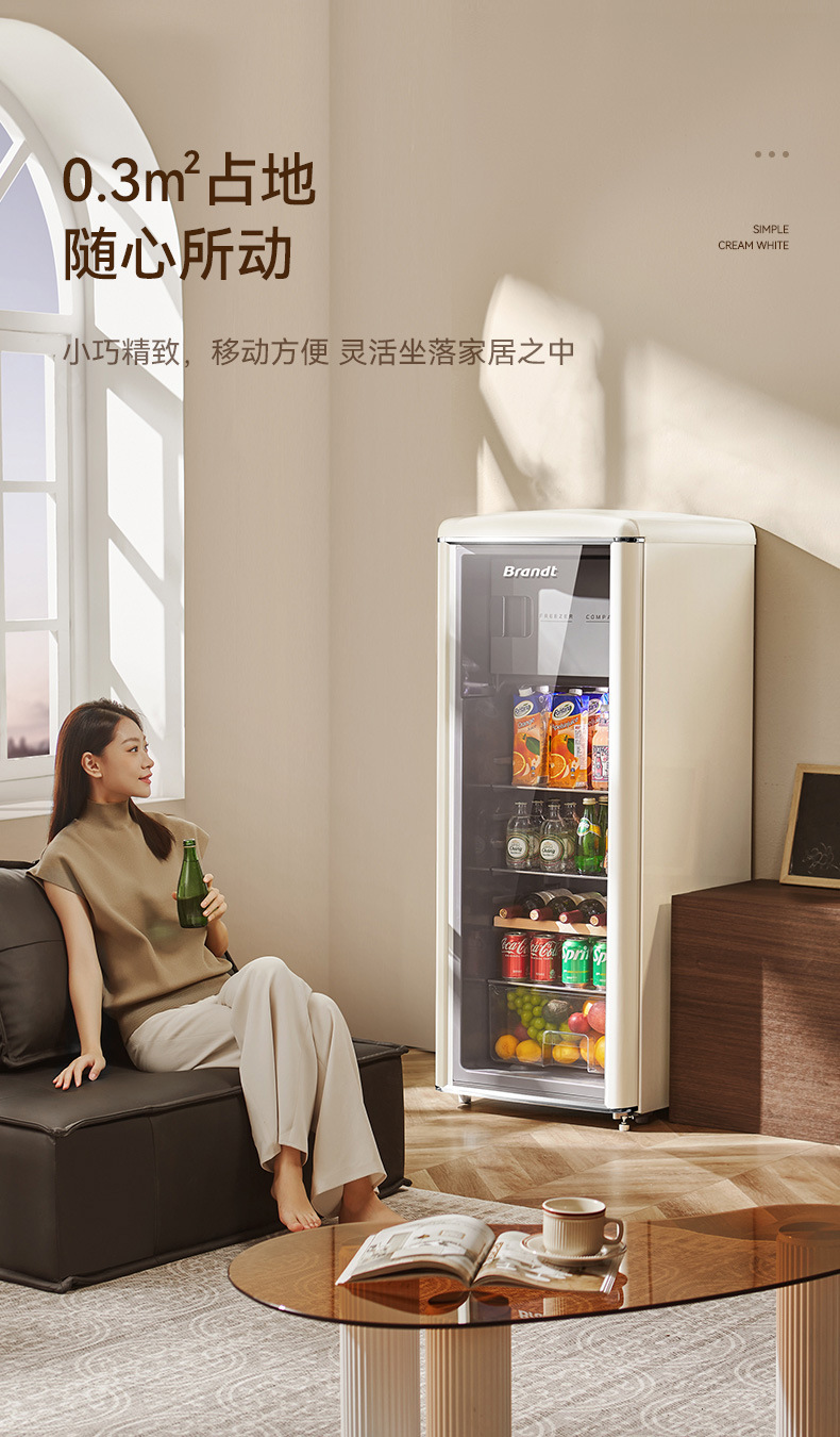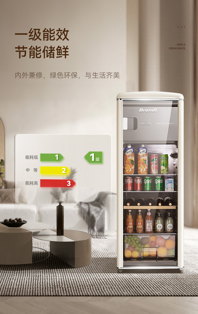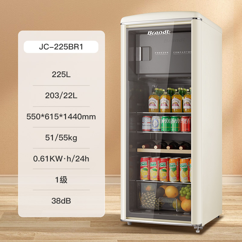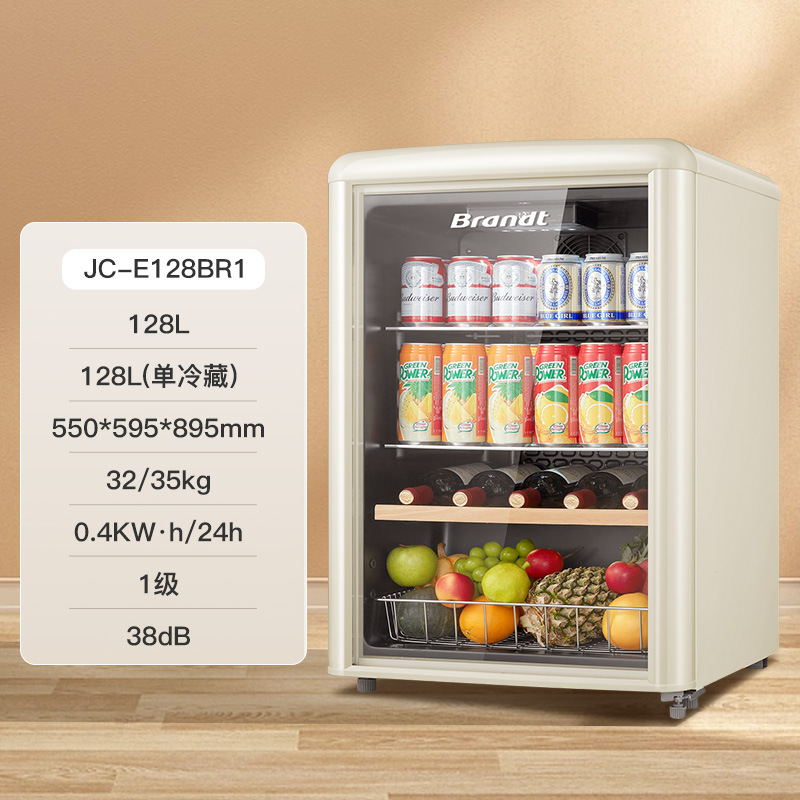 바이 랭 빈티지 아이스 바 거실 차 가정용 미니 냉장고 작은 투명한 단일 도어 캐비닛 레드 와인 신선한 냉동 유지