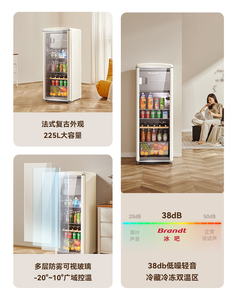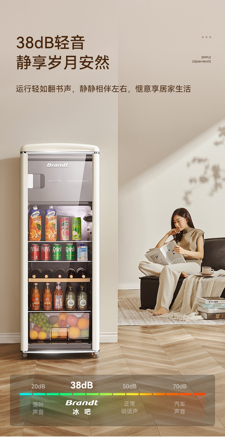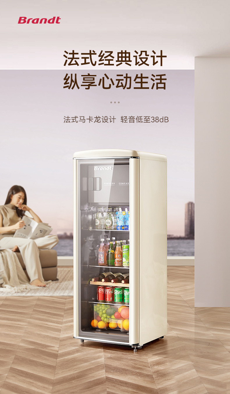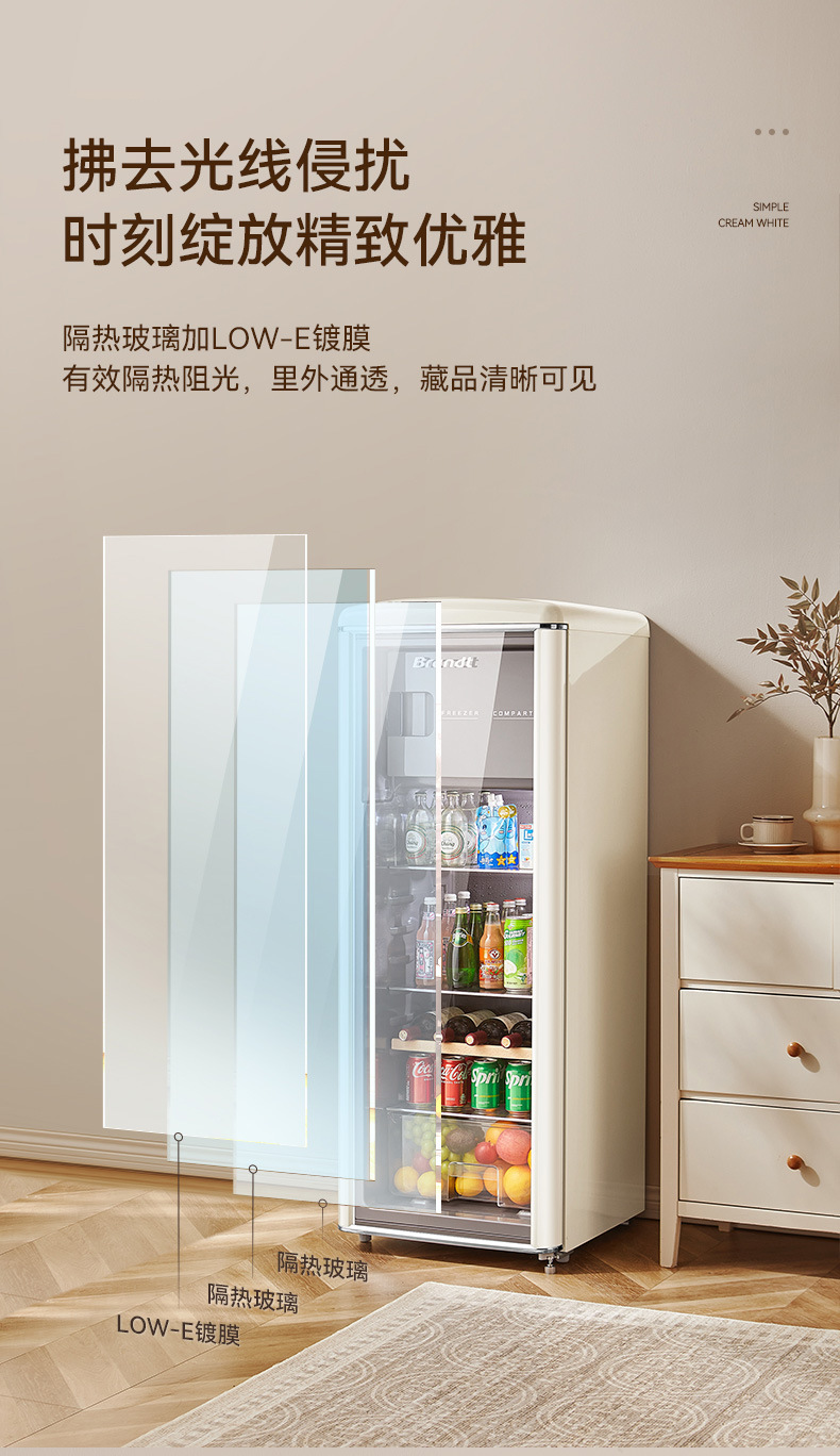 바이 랭 빈티지 아이스 바 거실 차 가정용 미니 냉장고 작은 투명한 단일 도어 캐비닛 레드 와인 신선한 냉동 유지