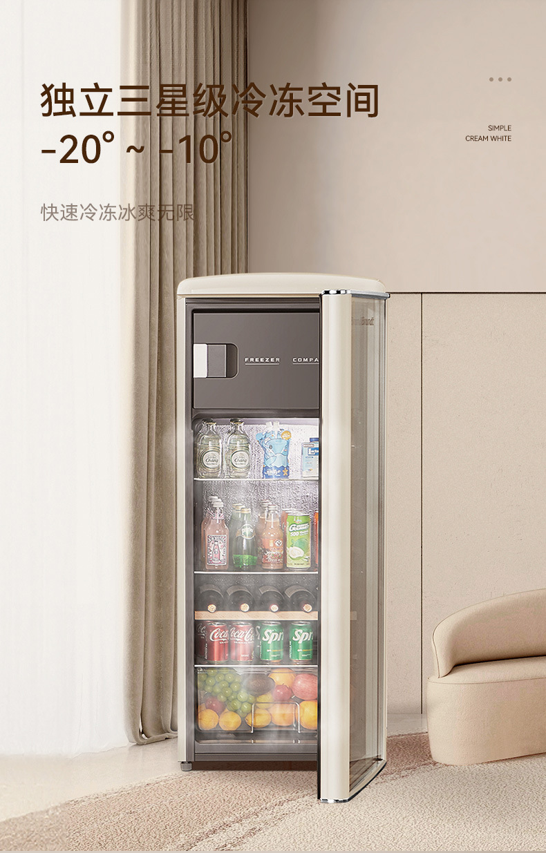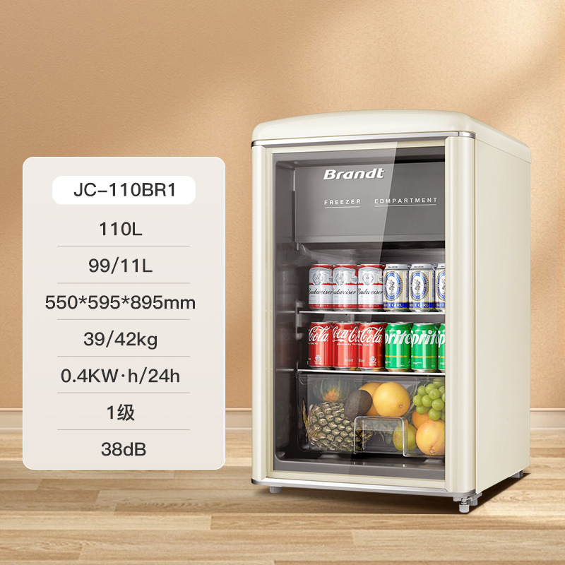 바이 랭 빈티지 아이스 바 거실 차 가정용 미니 냉장고 작은 투명한 단일 도어 캐비닛 레드 와인 신선한 냉동 유지스토어 가기