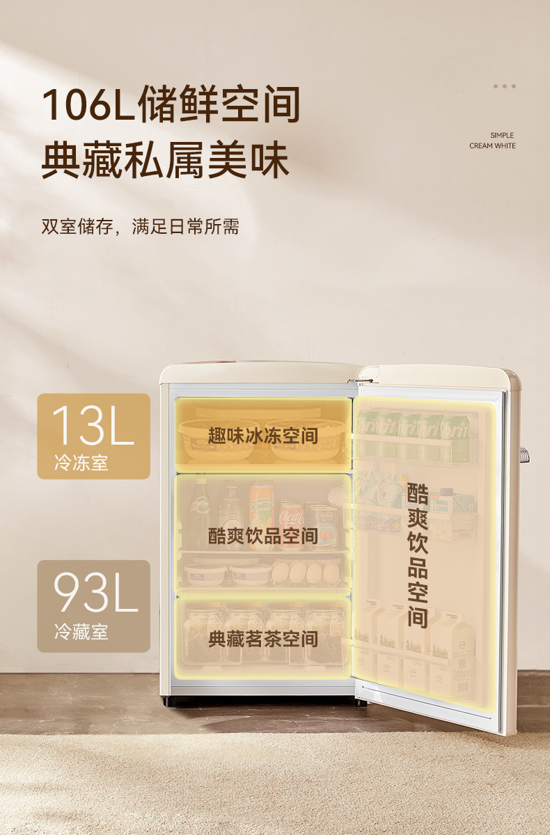 • 스프레이 화이트-레트로 냉장고 106L