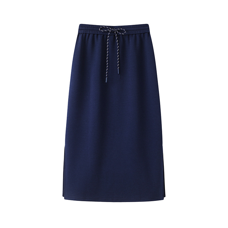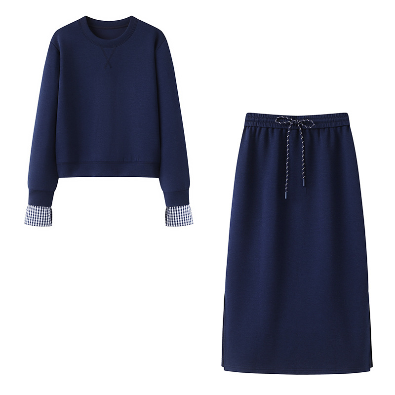 여성 2025 봄 새로운 가짜 2 피스 라운드 넥 스웨터 드로 스트링 탄성 허리 스커트 Q401A020NT00