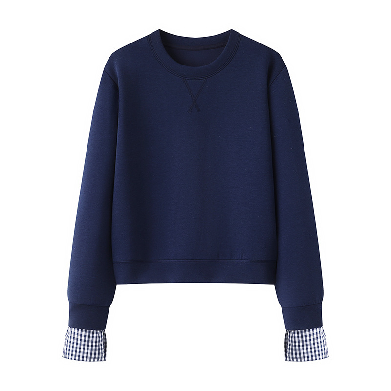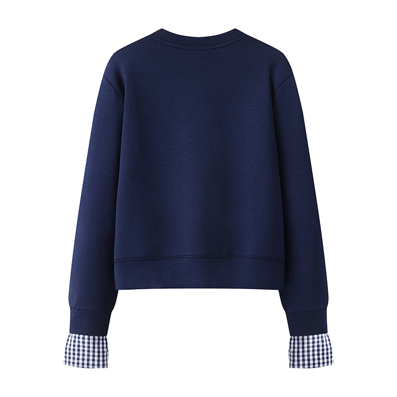 여성 2025 봄 새로운 가짜 2 피스 라운드 넥 스웨터 드로 스트링 탄성 허리 스커트 Q401A020NT00스토어 가기