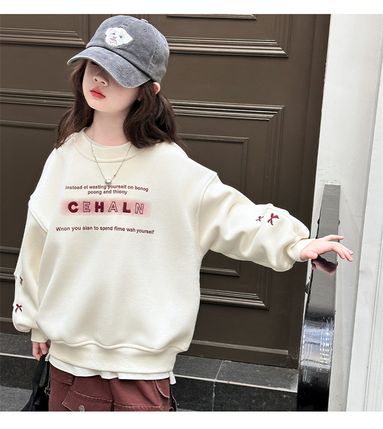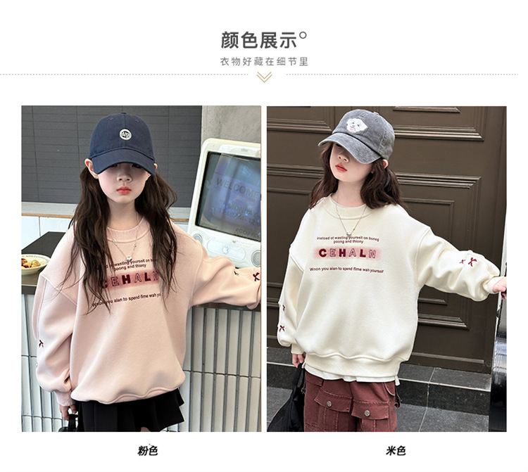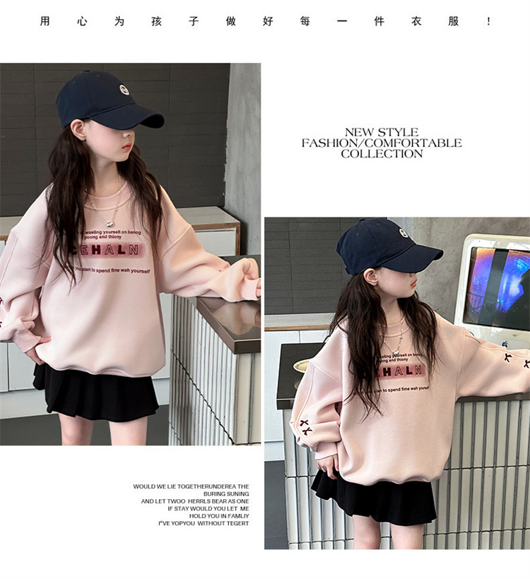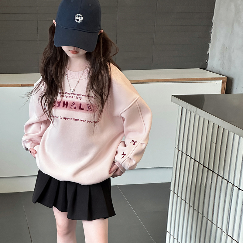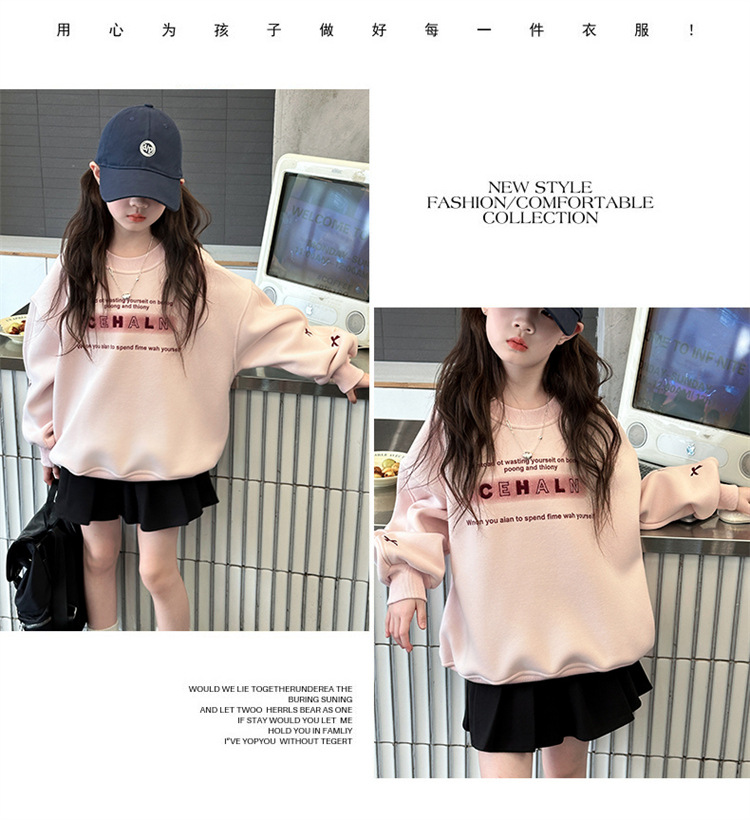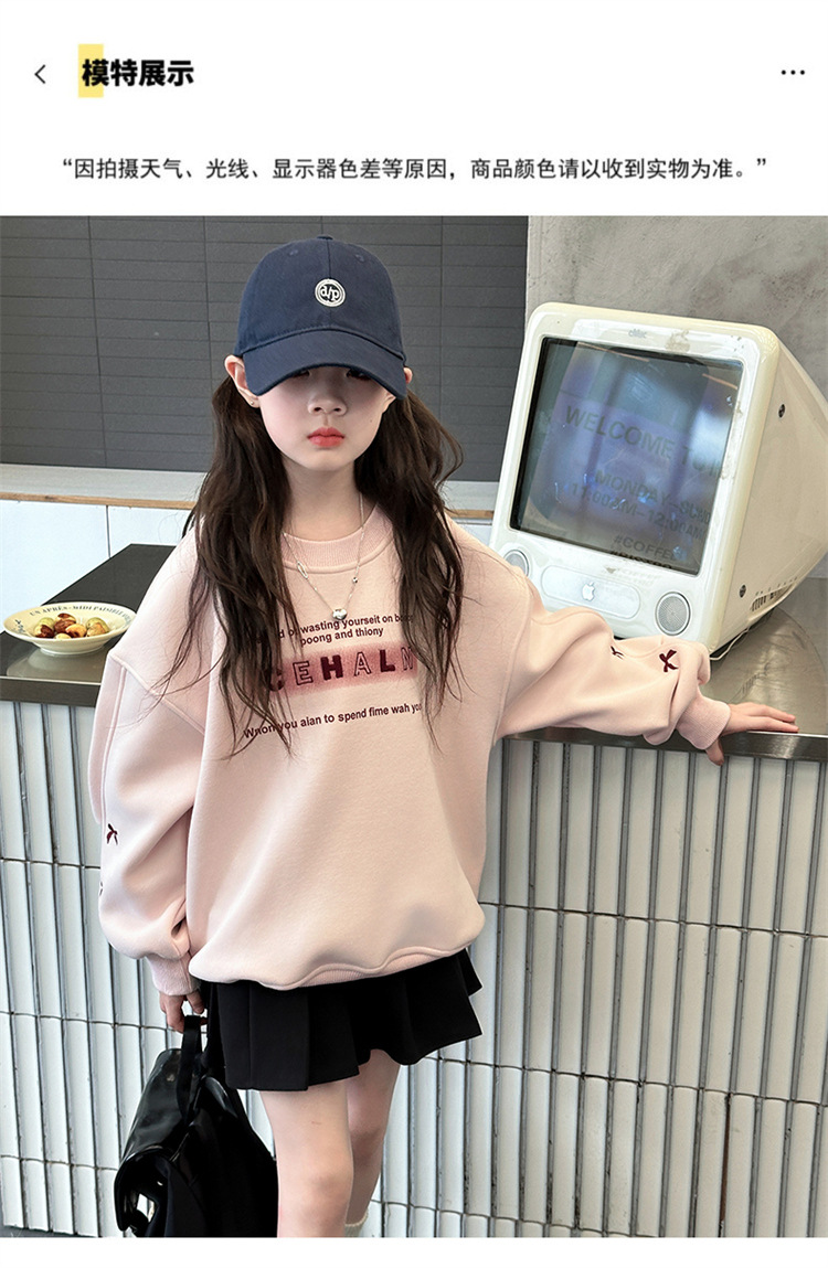 소녀 큰 어린이 스웨트 셔츠 봄과 가을 2025 새로운 소녀 세련된 패션 탑 어린이 이른 봄 옷 중학교 학생 유행스토어 가기