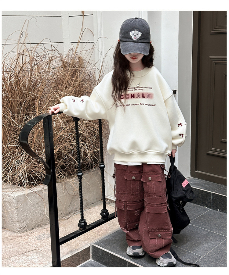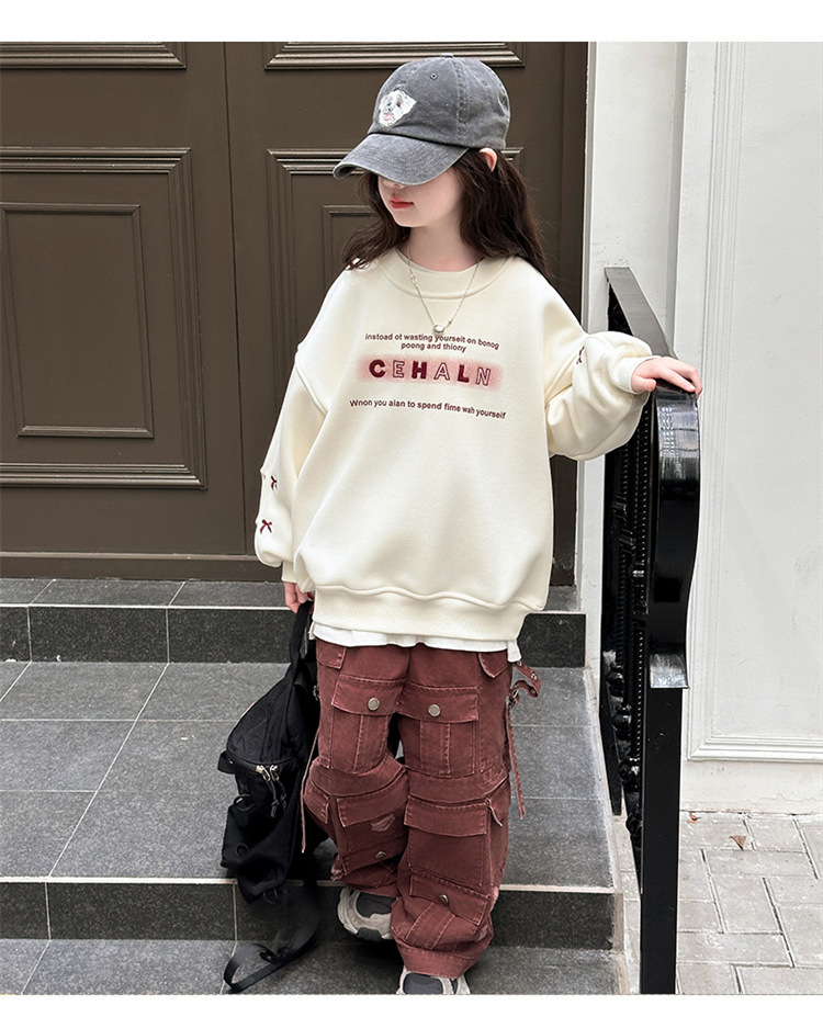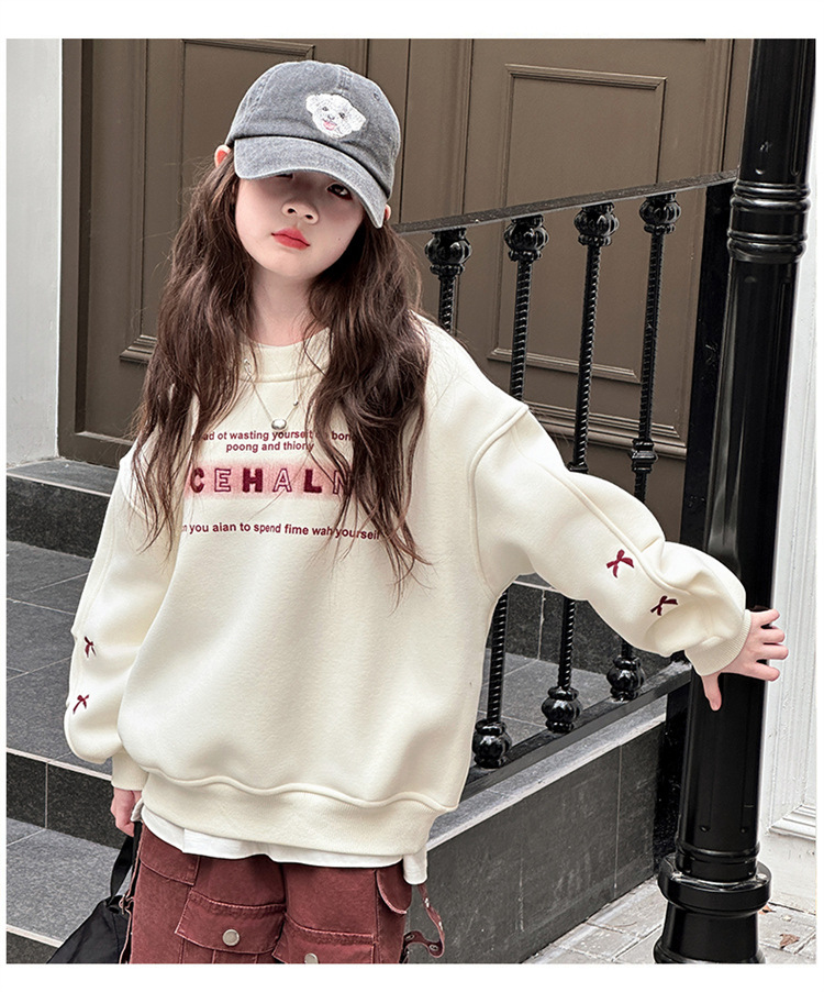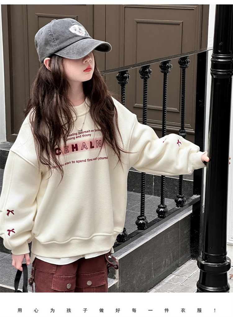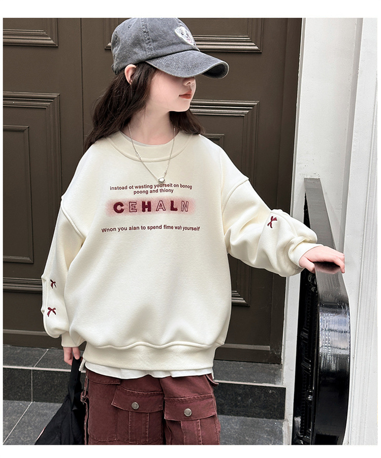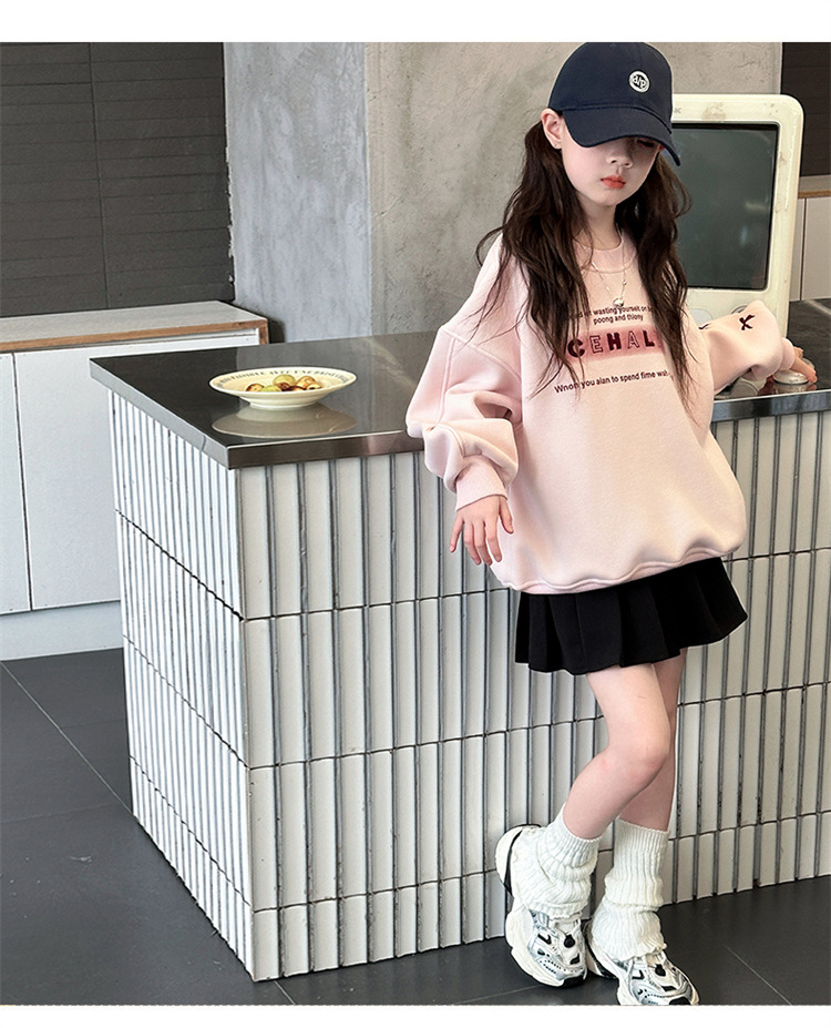 소녀 큰 어린이 스웨트 셔츠 봄과 가을 2025 새로운 소녀 세련된 패션 탑 어린이 이른 봄 옷 중학교 학생 유행스토어 가기