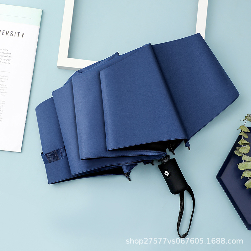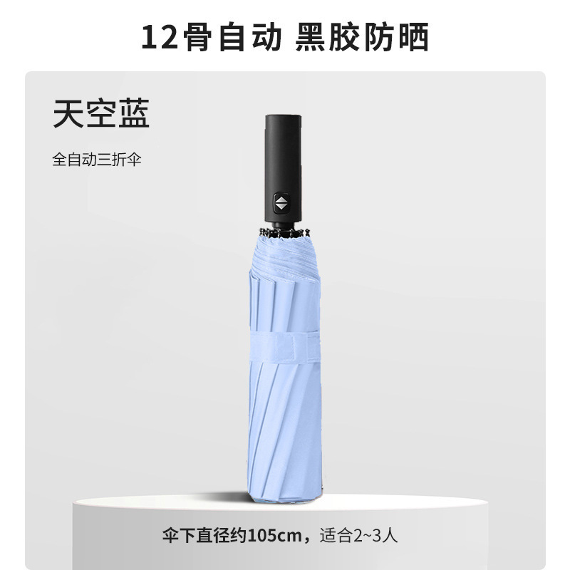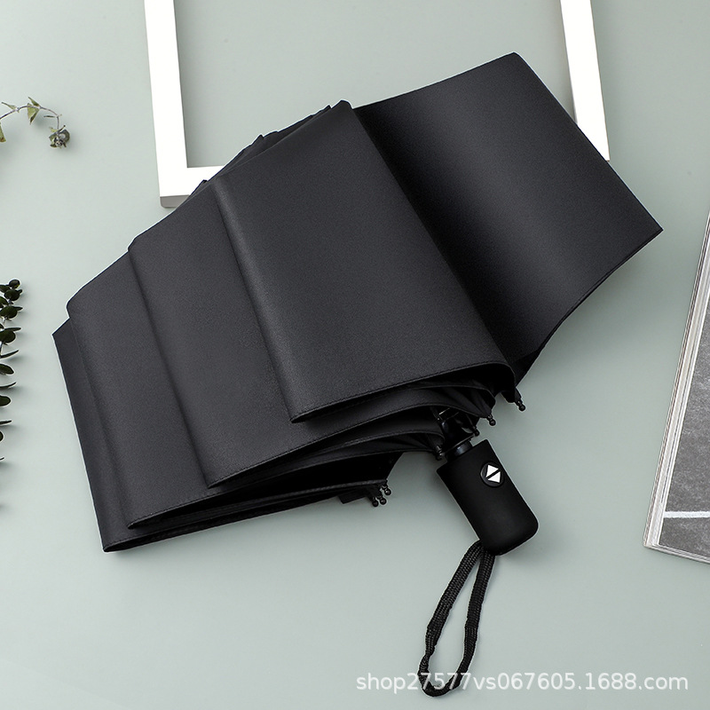 24-뼈 자동 우산 접히는 3 배 블랙 접착제 선 스크린 햇빛 비 우산 남성 우산 맞춤형 도매 광고 우산
