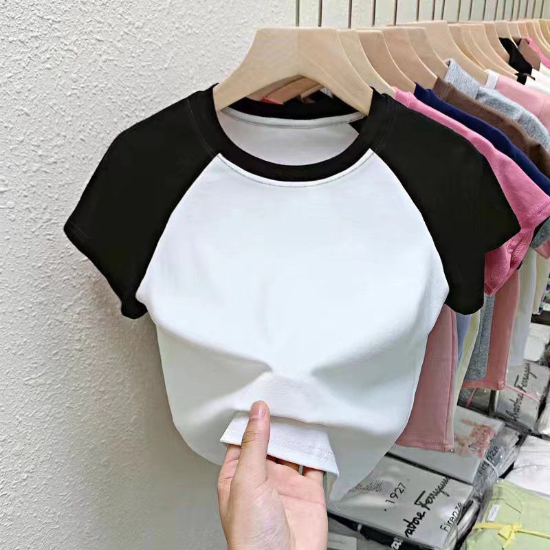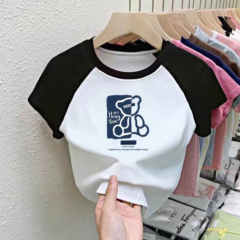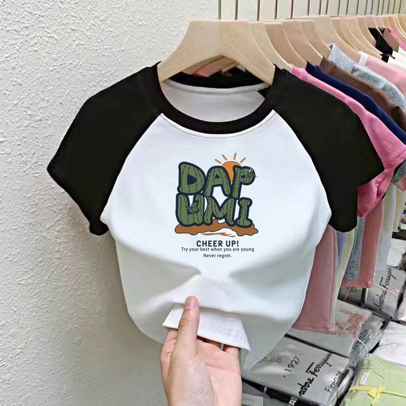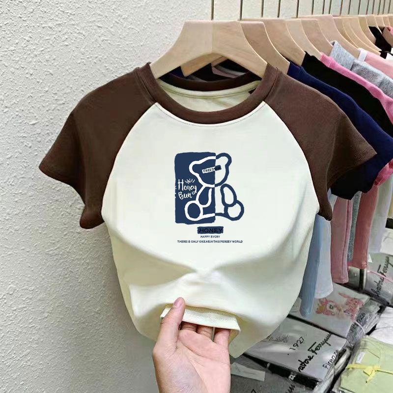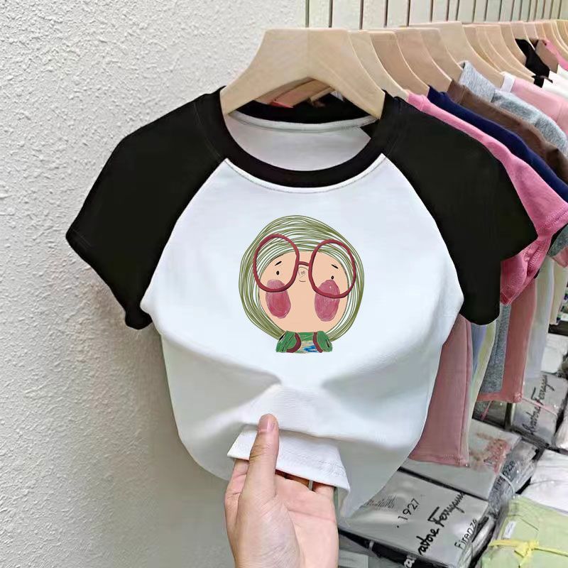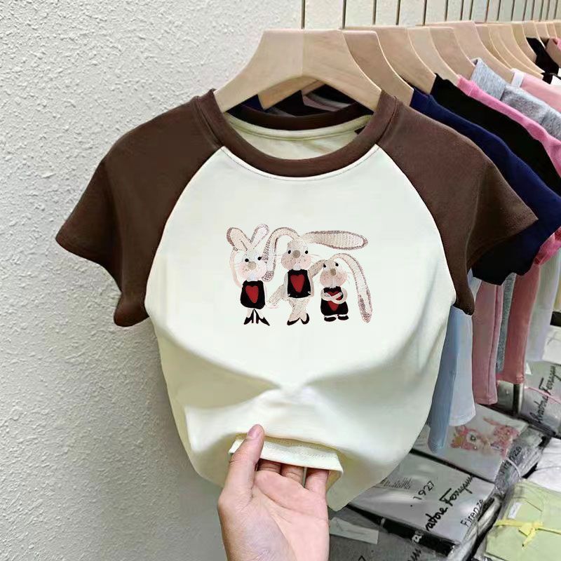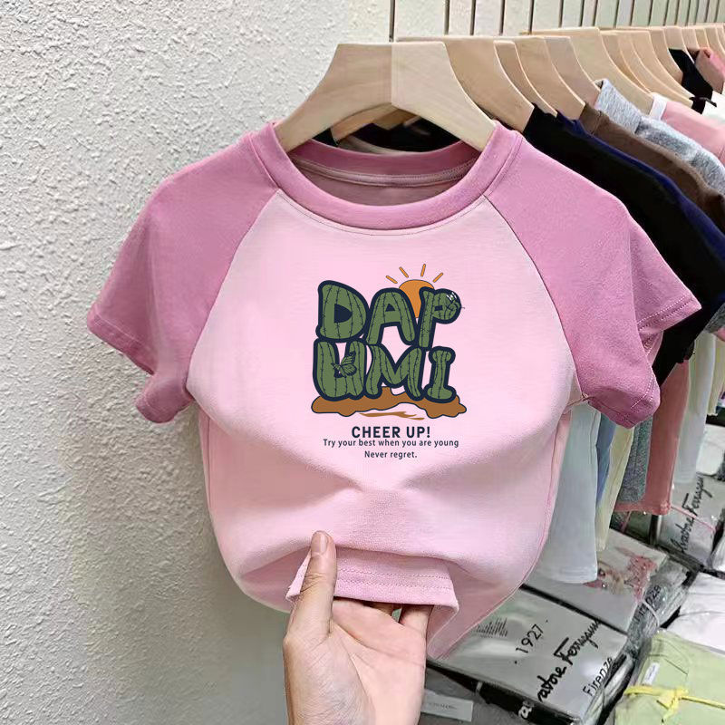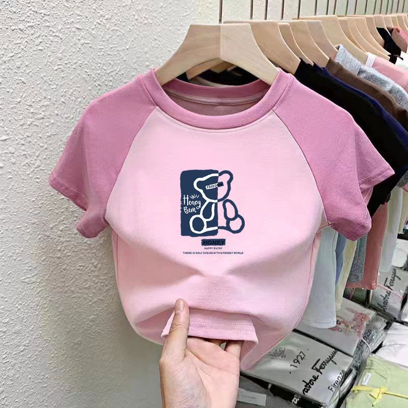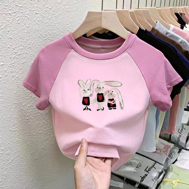 퓨어 코튼 걸의 반팔 만화 컬러 매칭 어린이 티셔츠 아기 서양식 달콤한 반소매 여름 반소매 셔츠스토어 가기