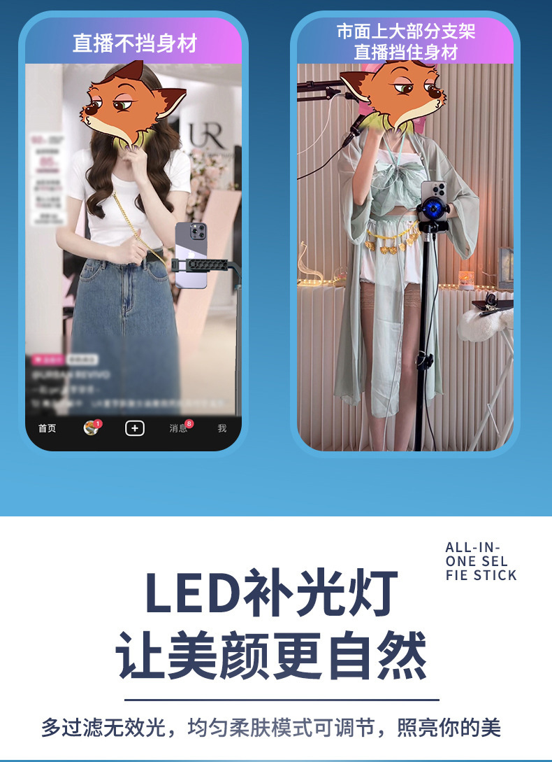 • 새롭게 업그레이드된 A17 블랙 [ 1.8m 알루미늄 합금 셀카봉 + 충전 기능 Douyin 블루투스 리모컨 + 듀얼 헤드라이트]