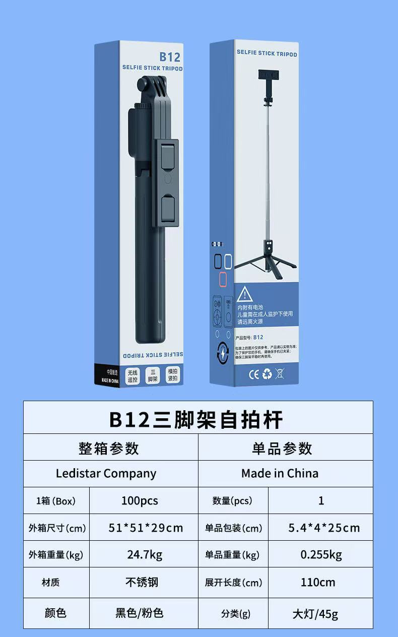 • 【 1.7m 】조명 없는 A12 검정색 Douyin Bluetooth 충전 리모컨 포함