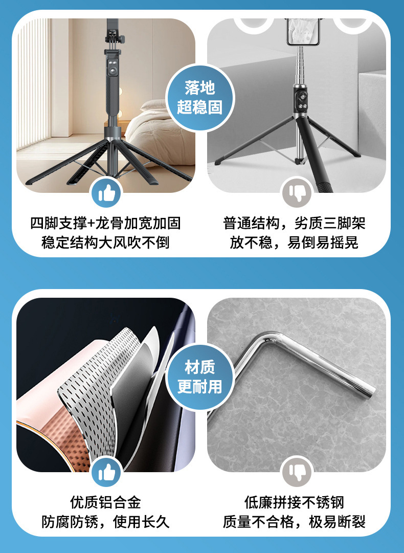 • 새롭게 업그레이드된 A14 블랙 [ 1.8m 알루미늄 합금 셀카봉 + 충전 기능 Douyin 블루투스 리모컨 + 듀얼 헤드라이트]