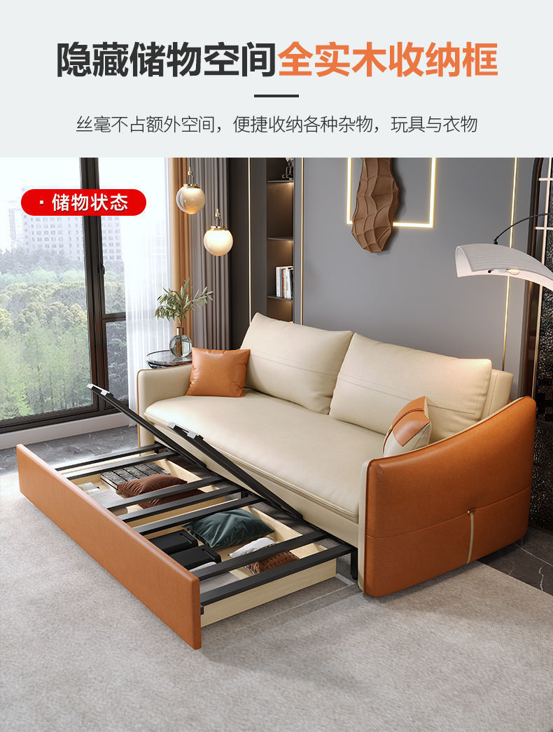 현대 미니멀리스트 럭셔리 소파 침대 접히는 이중 목적 다기능 솔리드 우드 스토리지 작은 아파트 거실 더블 빗 침대