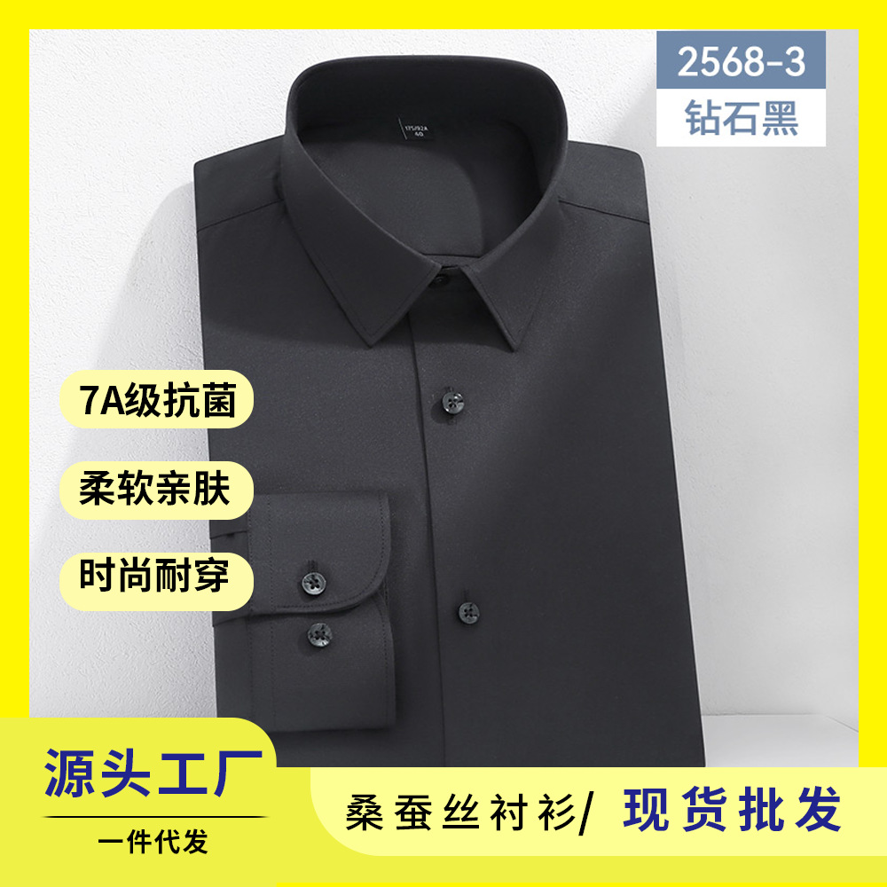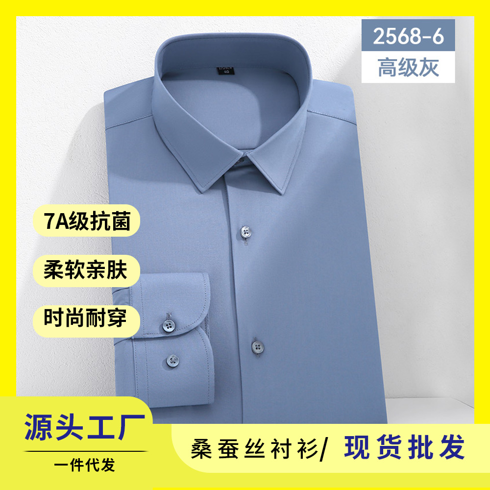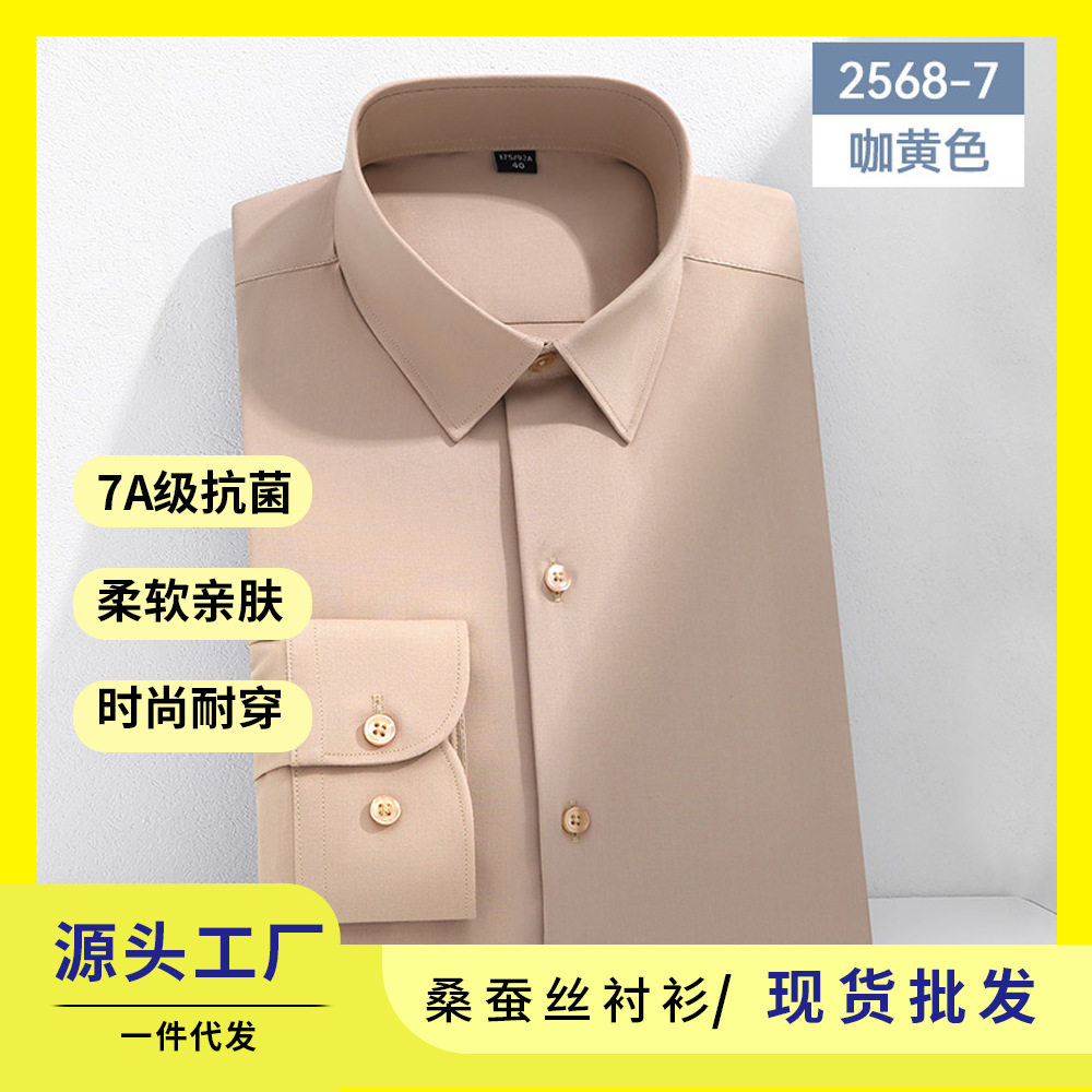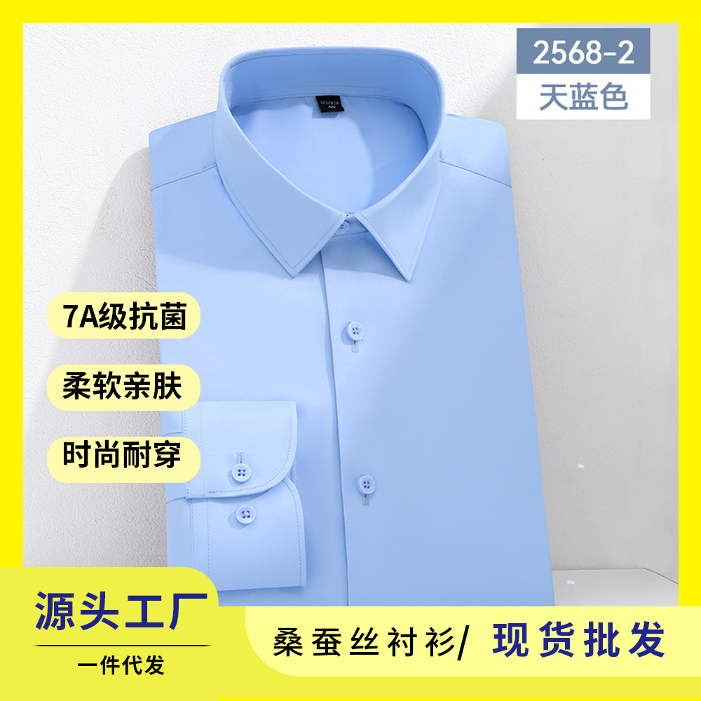7A 항균 실크 셔츠 남성용 긴팔 비즈니스 얇은 단색 셔츠 고급 남성 셔츠 도매스토어 가기