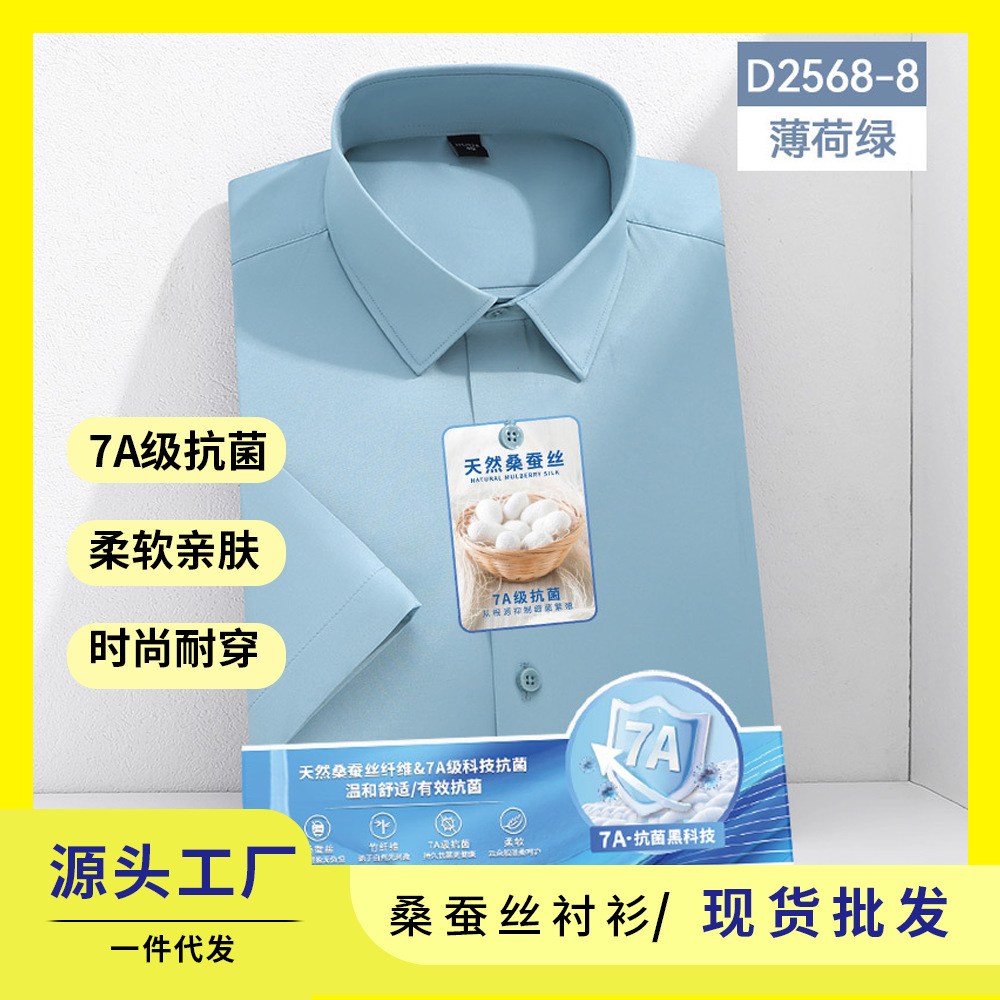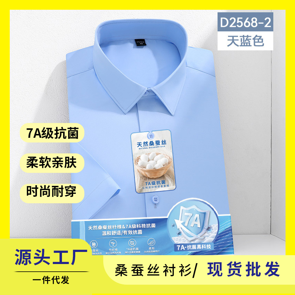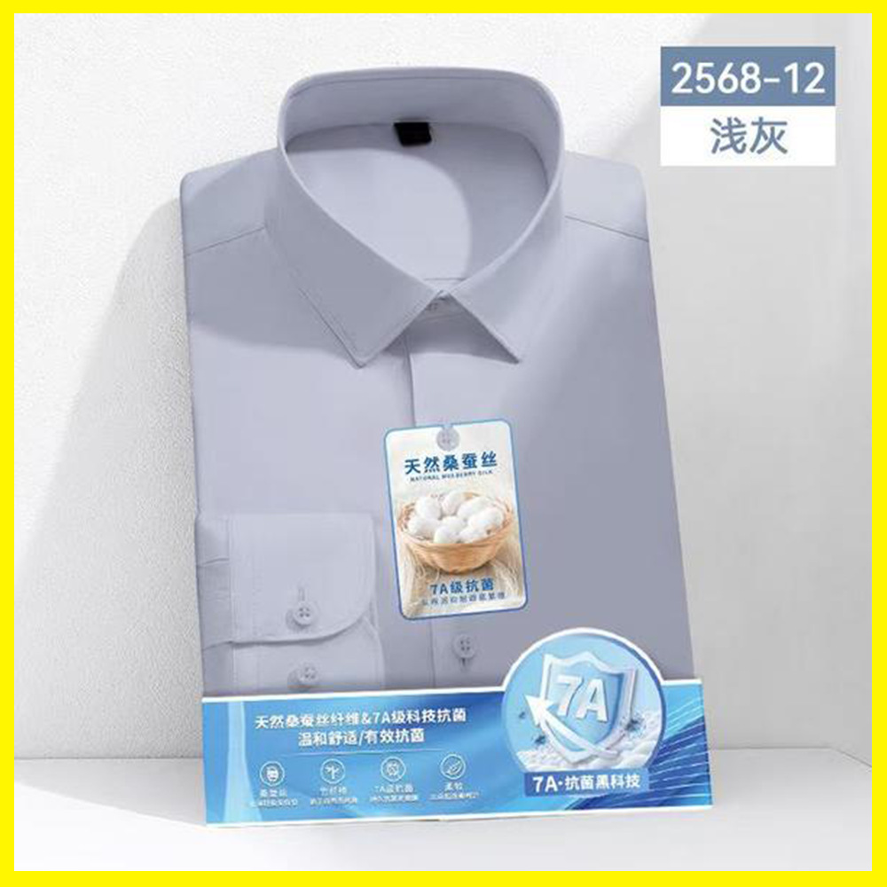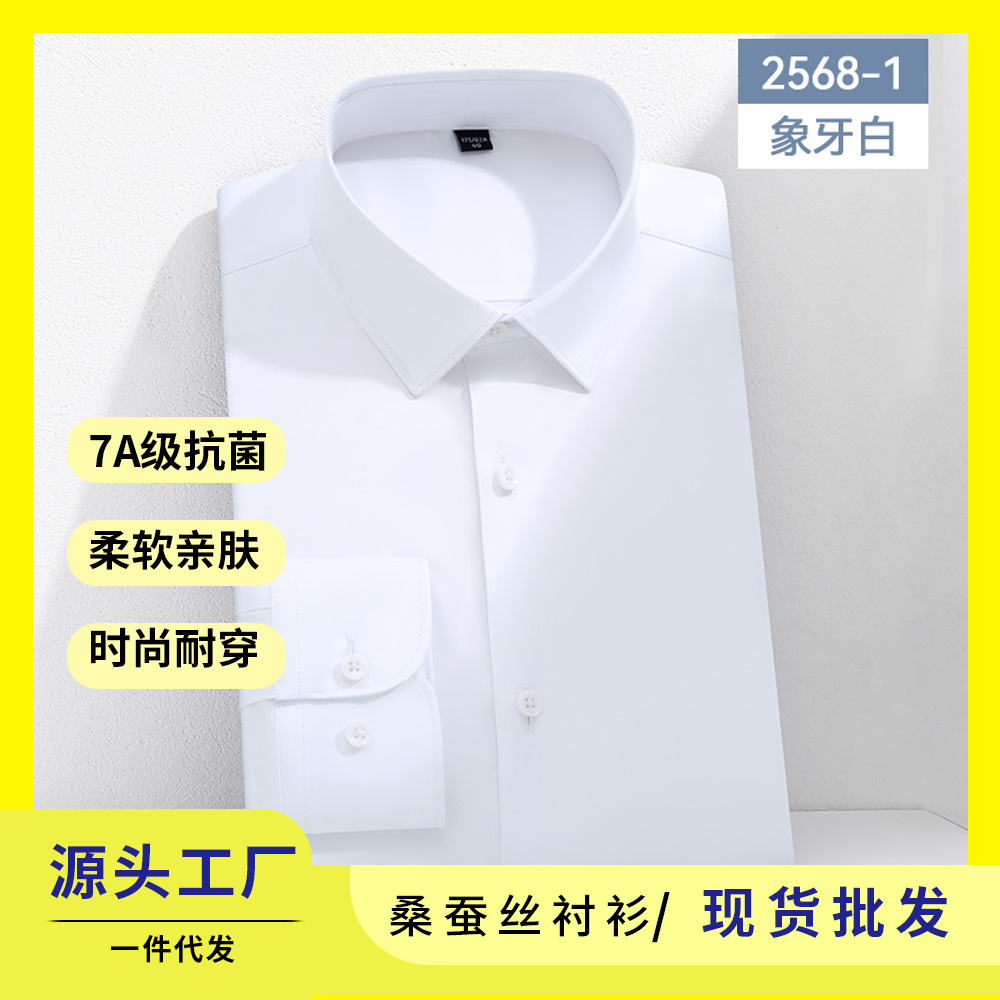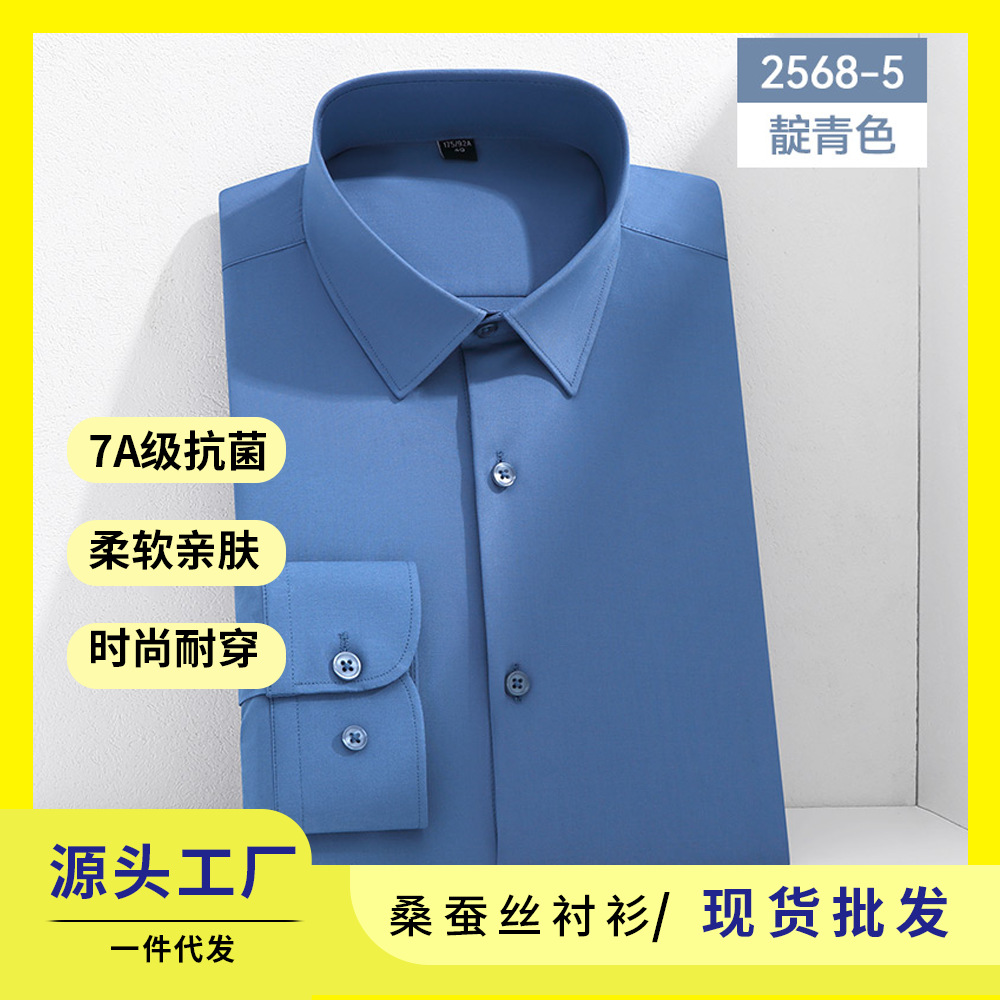 7A 항균 실크 셔츠 남성용 긴팔 비즈니스 얇은 단색 셔츠 고급 남성 셔츠 도매스토어 가기