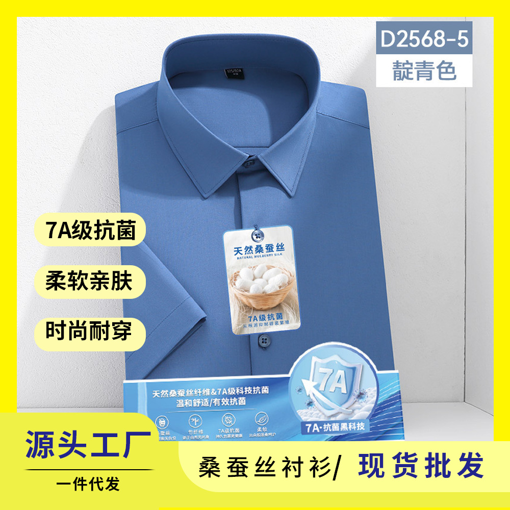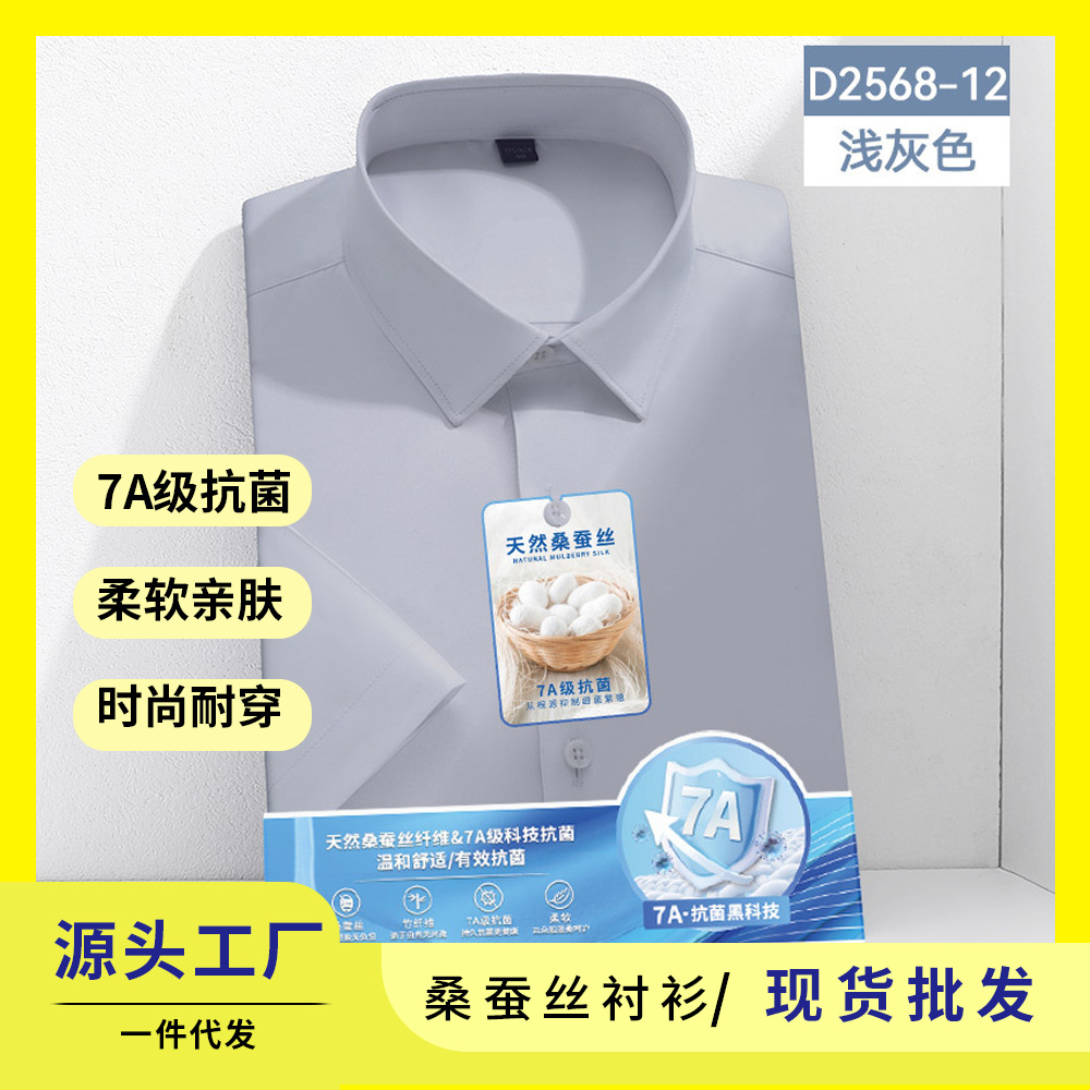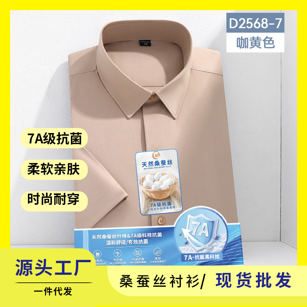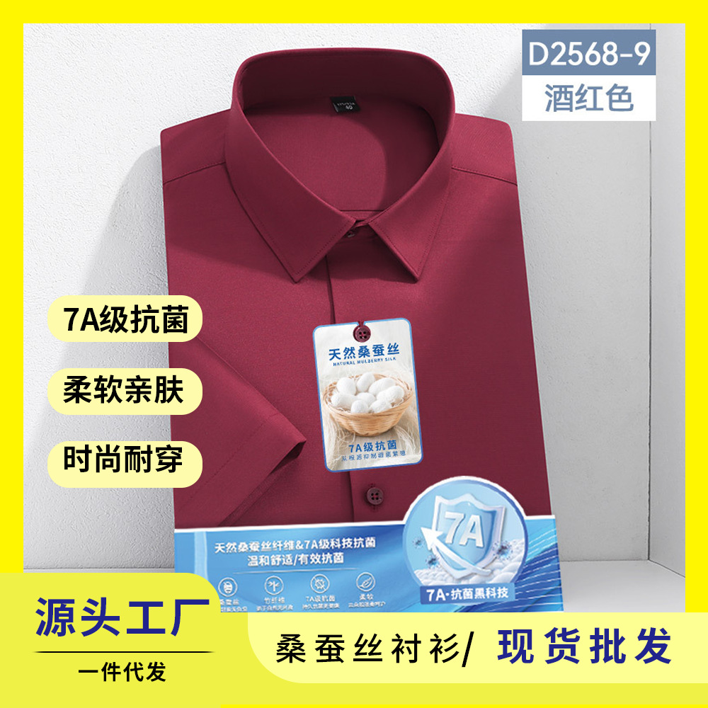 7A 항균 실크 셔츠 남성용 긴팔 비즈니스 얇은 단색 셔츠 고급 남성 셔츠 도매스토어 가기