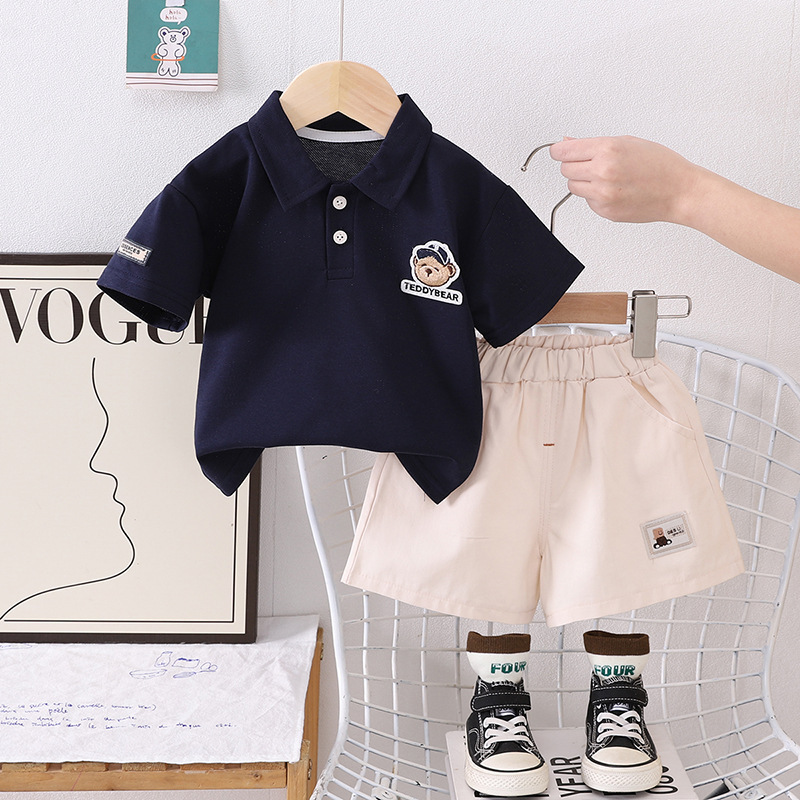 2025 소년 여름 옷 세트 소년의 자수 폴로 셔츠 반팔 투피스 세트 어린이 여름 옷 투피스 세트스토어 가기