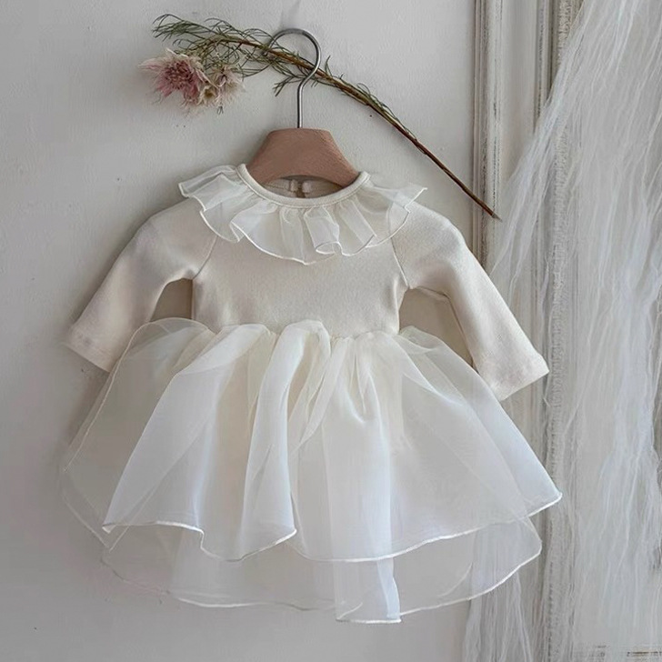 소녀 원피스 봄 새로운 한국 스타일 아기 가방 방귀 공주 스커트 봄과 가을 세련된 아기 소녀 치마