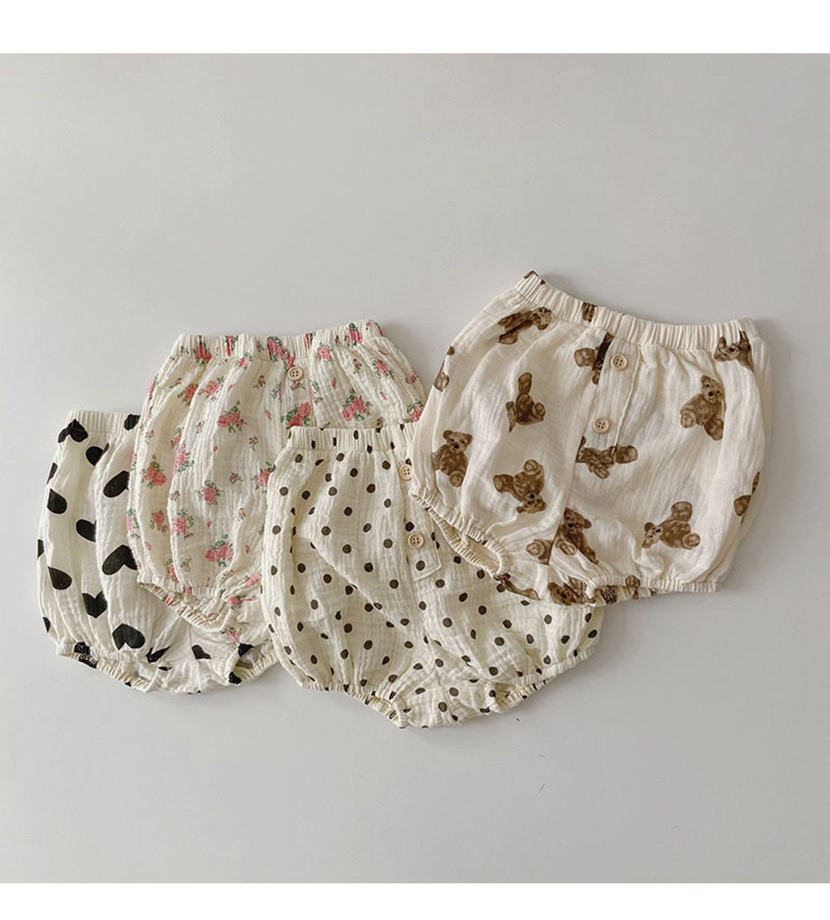 여름 소년과 소녀 아기 면사 반바지 2025 어린이 랜턴 바지 귀여운 인쇄 곰 꽃 아기 바지