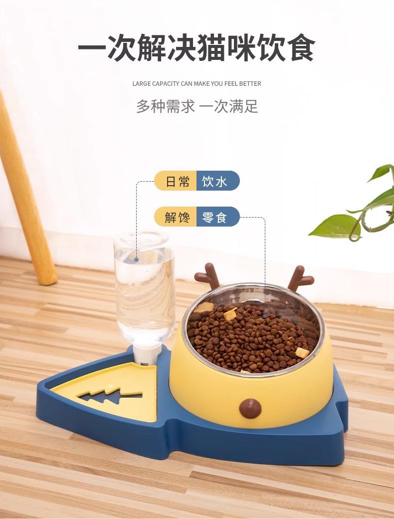 • 크리스마스 트리 고양이 그릇 [옐로우 블루]