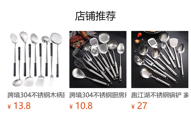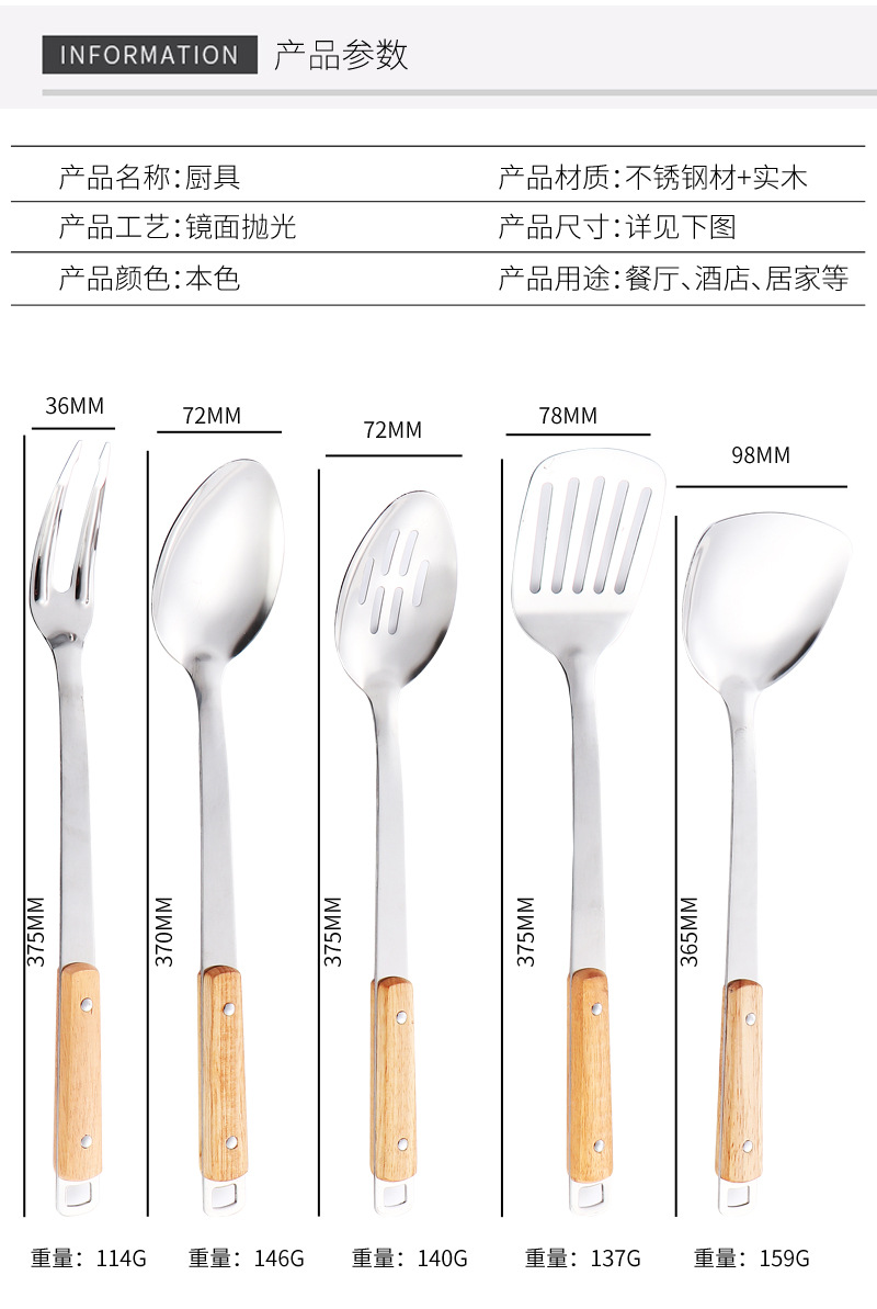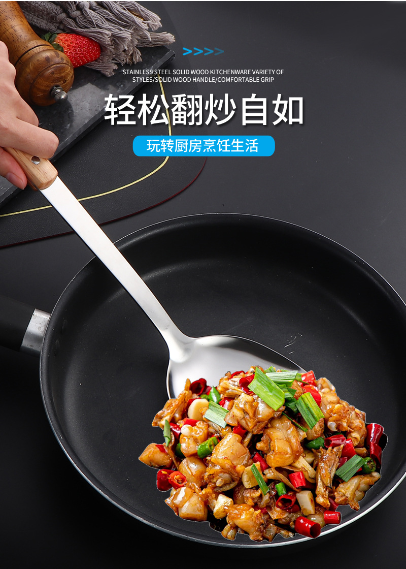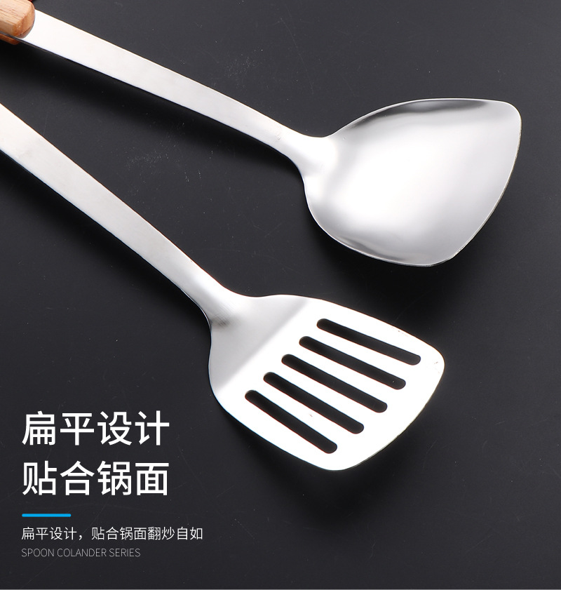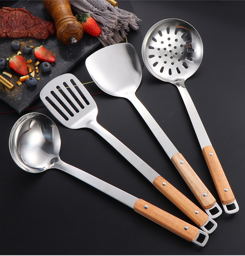 국경 간 스테인레스 주방 용품 두꺼운 나무 손잡이 주걱 튀김 주걱 수프 스푼 국수 고기 포크 요리 도구 9 피스 세트스토어 가기