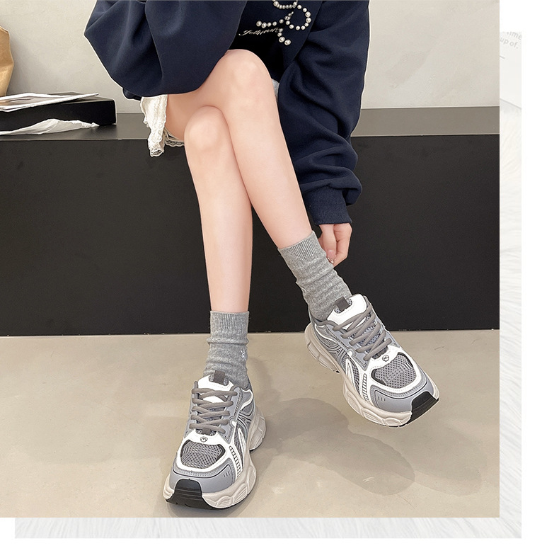 플러스 사이즈 2025 봄 새 아빠 신발 두꺼운 단독 스포츠 캐주얼 신발 학생 올매치 한국 스타일 통기성 여성 싱글 신발