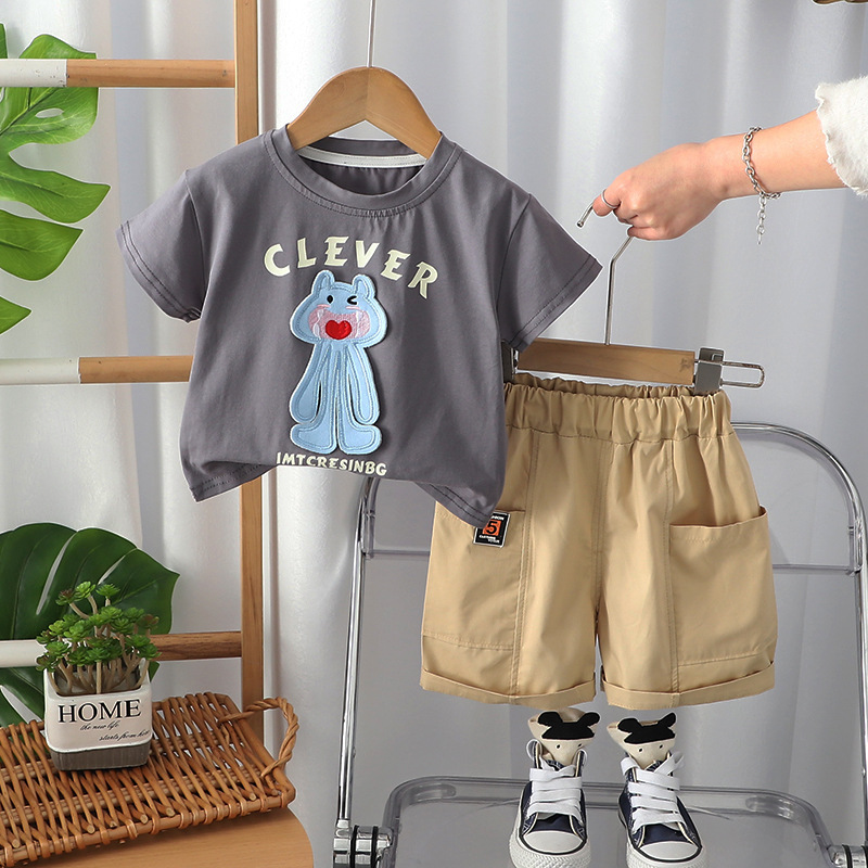국경 간 소년 여름 세트 2025 새로운 외국 스타일 아기 만화 짧은 소매 투피스 아기 여름 옷스토어 가기