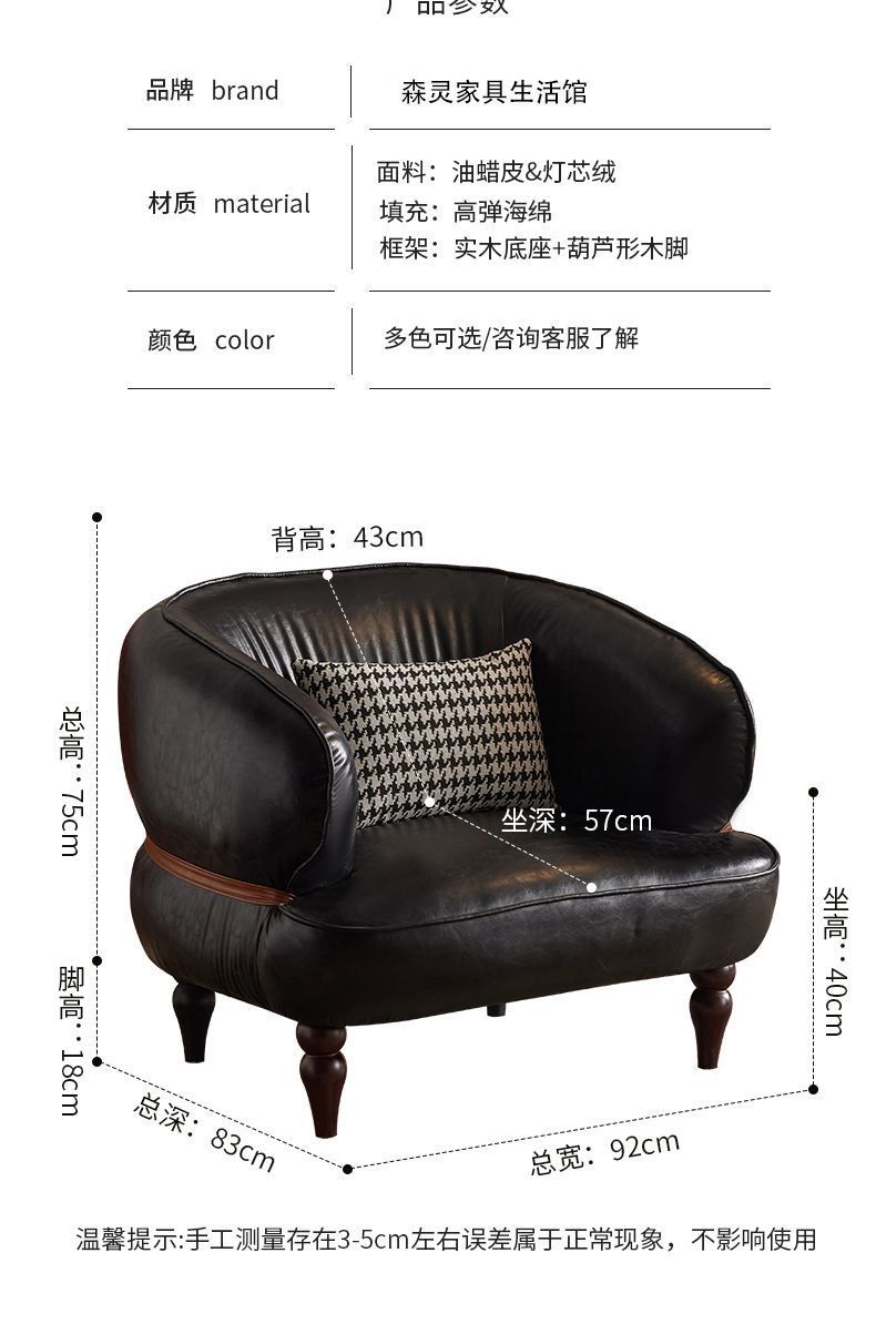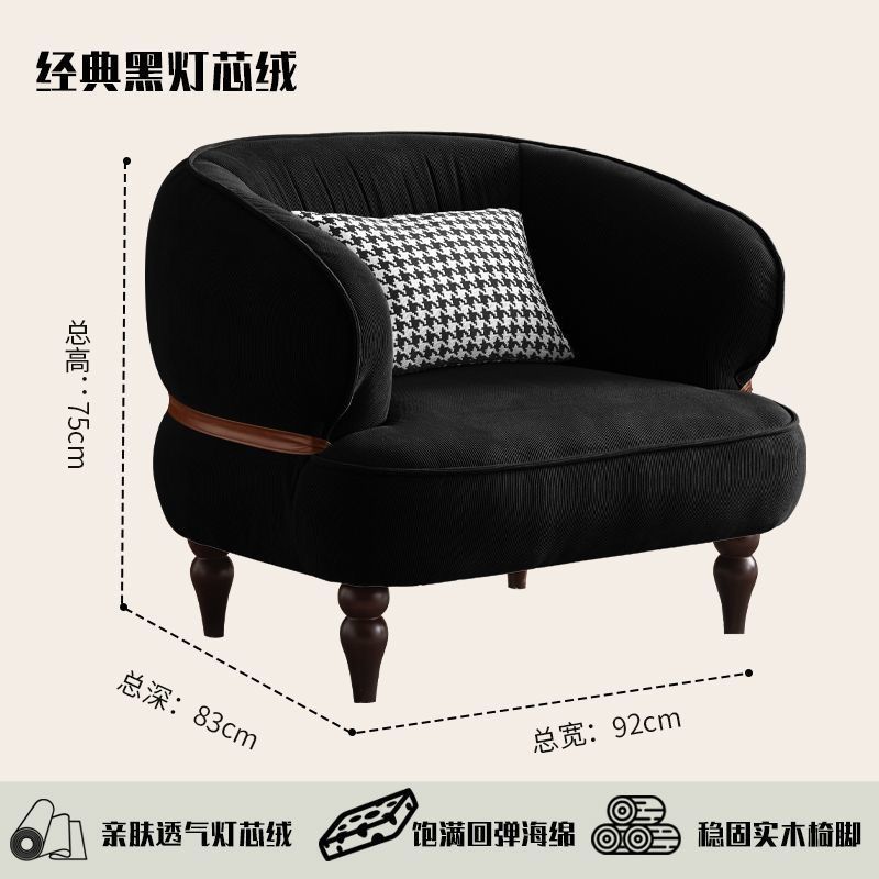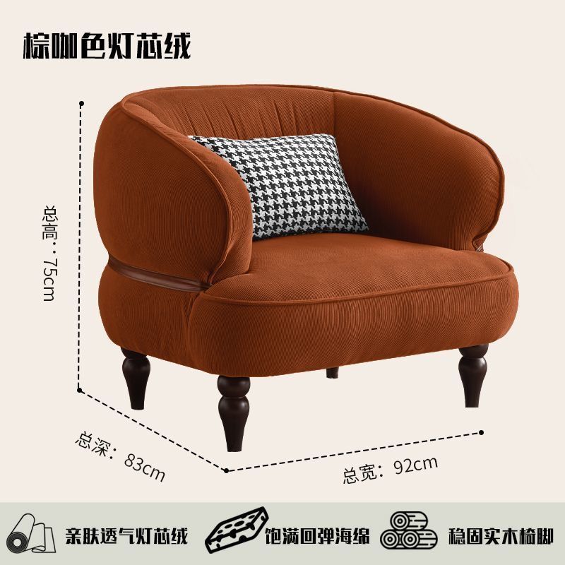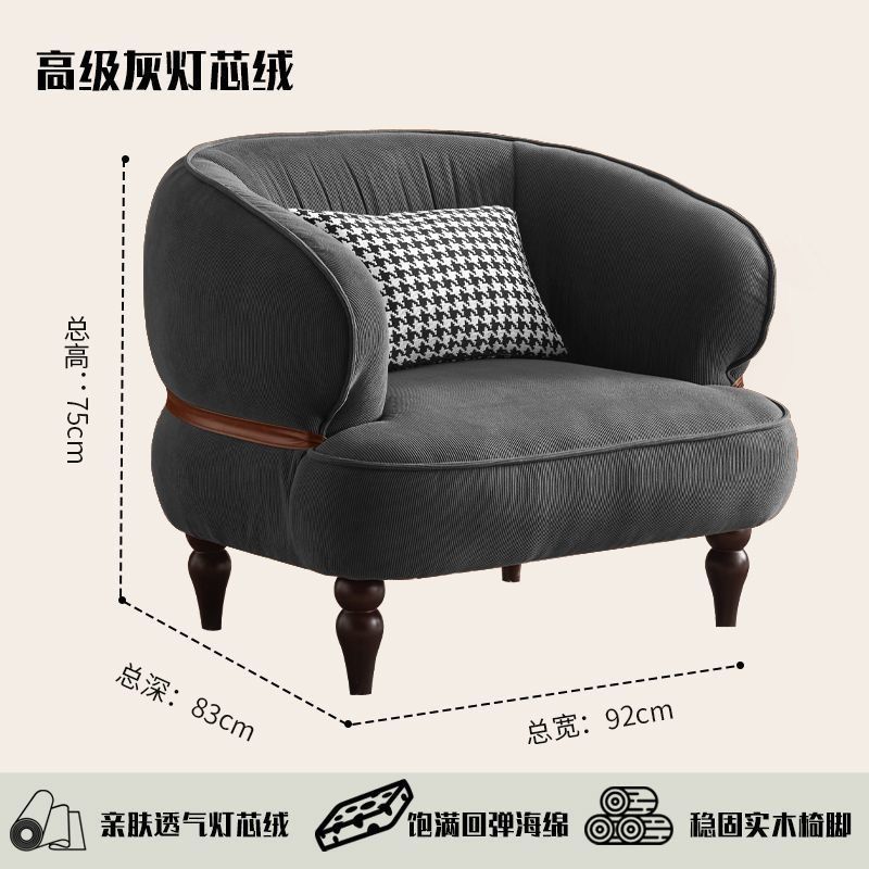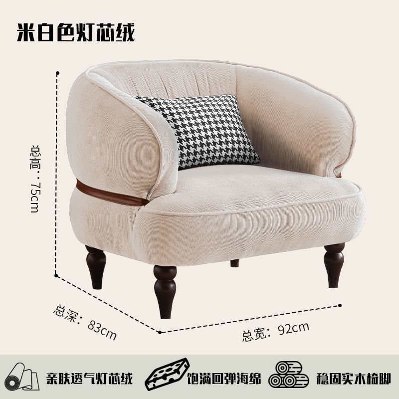 아메리칸 스타일 라이트 럭셔리 싱글 소파 홈 작은 아파트 레저 침실 거실 게으른 소파 의자 발코니 리셉션 의자