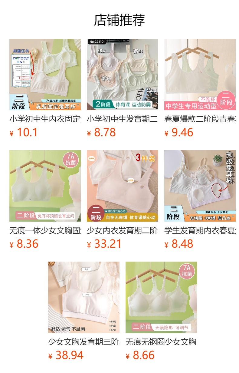 새로운 2 단계 소녀 브라 통기성 고정 컵 조끼 사춘기 고등학생 항균 스포츠 속옷스토어 가기