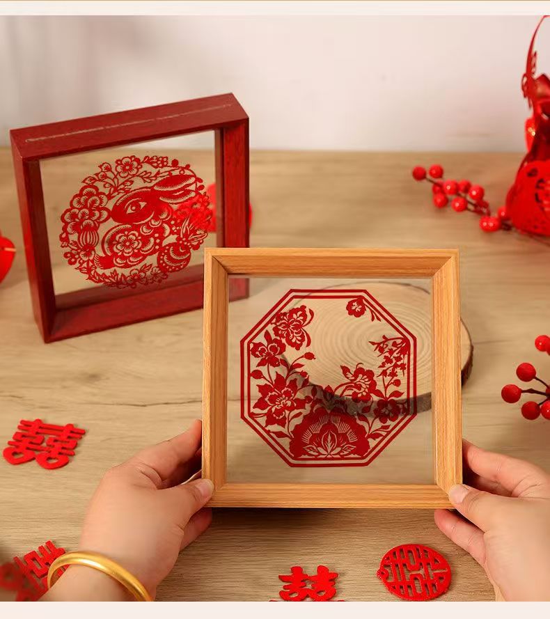 중국 스타일 양면 투명 사진 프레임 설정 테이블 손으로 양각 종이 컷 작업 장착 프레임 공장 표본 디스플레이 프레임