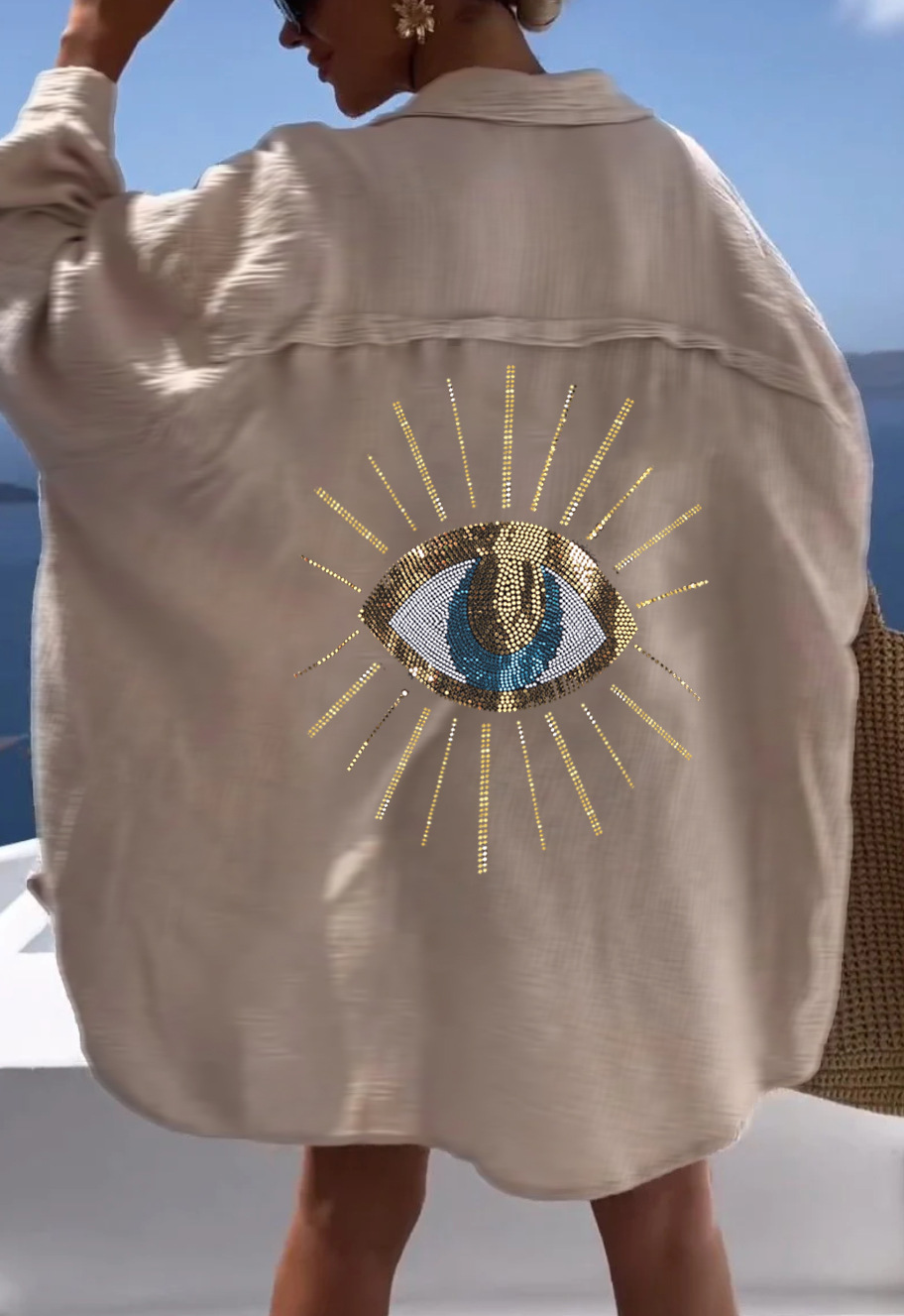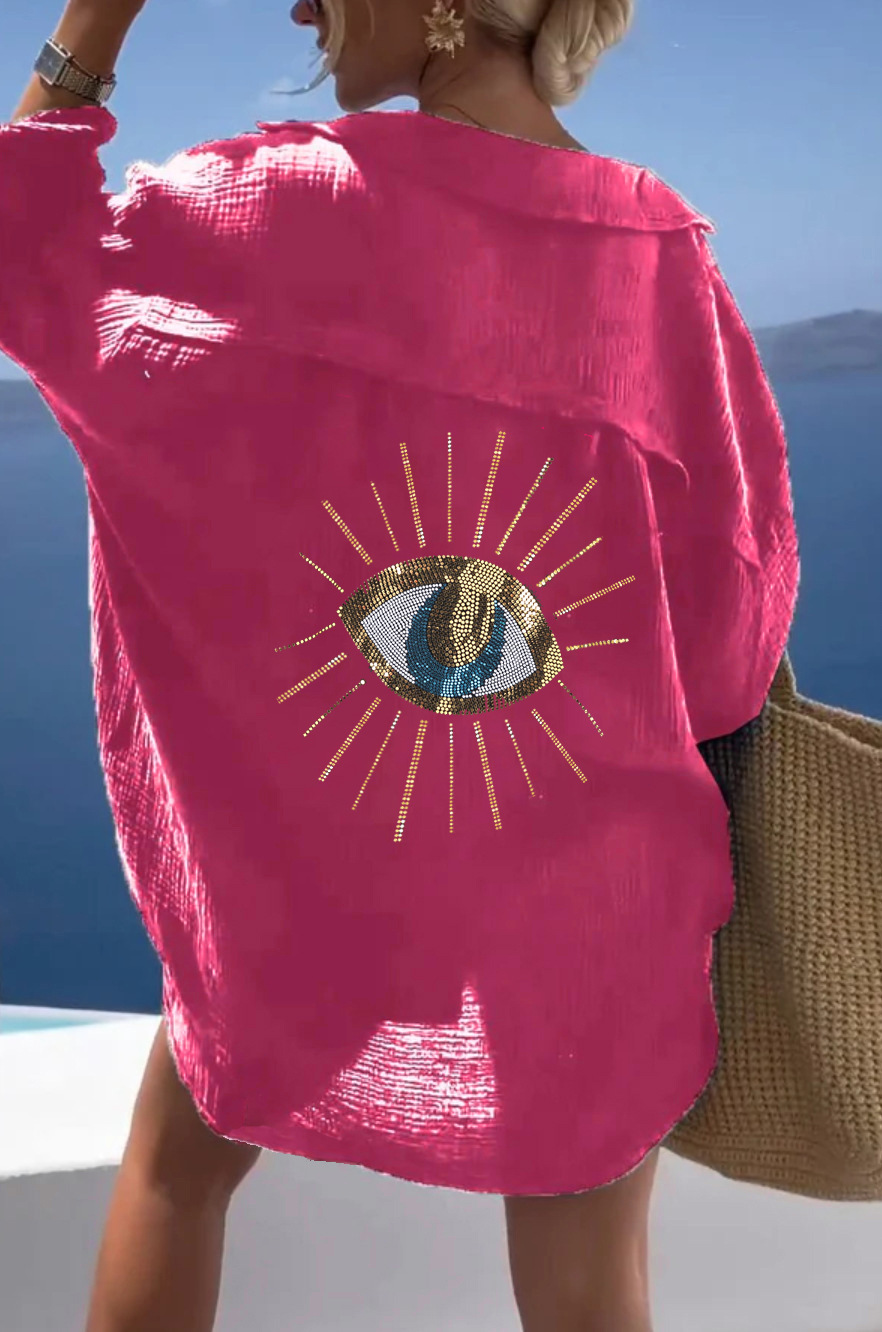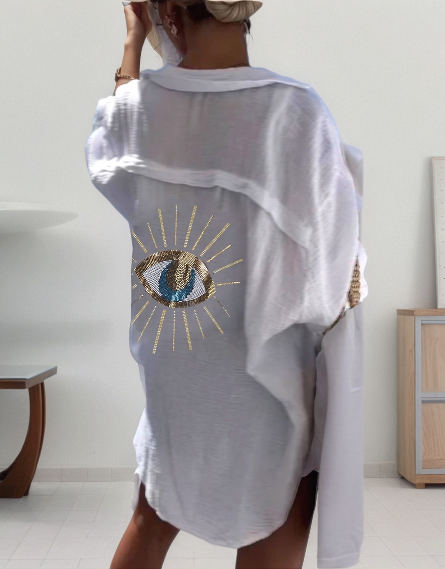 유럽과 미국 국경 대외 무역 여성의 2025 년 봄과 가을 새로운 아마존 옷깃 긴 소매 캐주얼 패션 셔츠스토어 가기