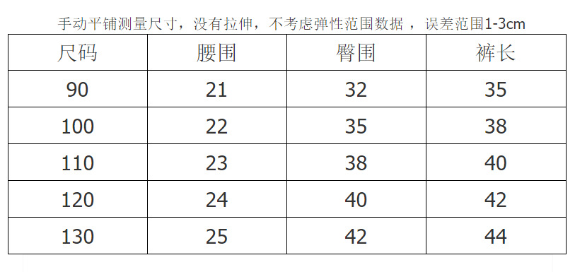 手动平铺测量尺寸,没有拉伸,不考虑弹性范围数据 ,误差范围1-3cm