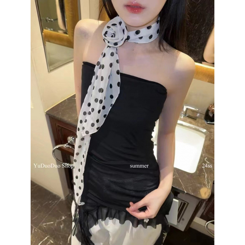 2025 한국식 폴도트 실크 스카프 목 밴드 타이 헤어 여성 고급 스카프 가을과 겨울 얇은 목 보호 스카프 긴 스트립스토어 가기