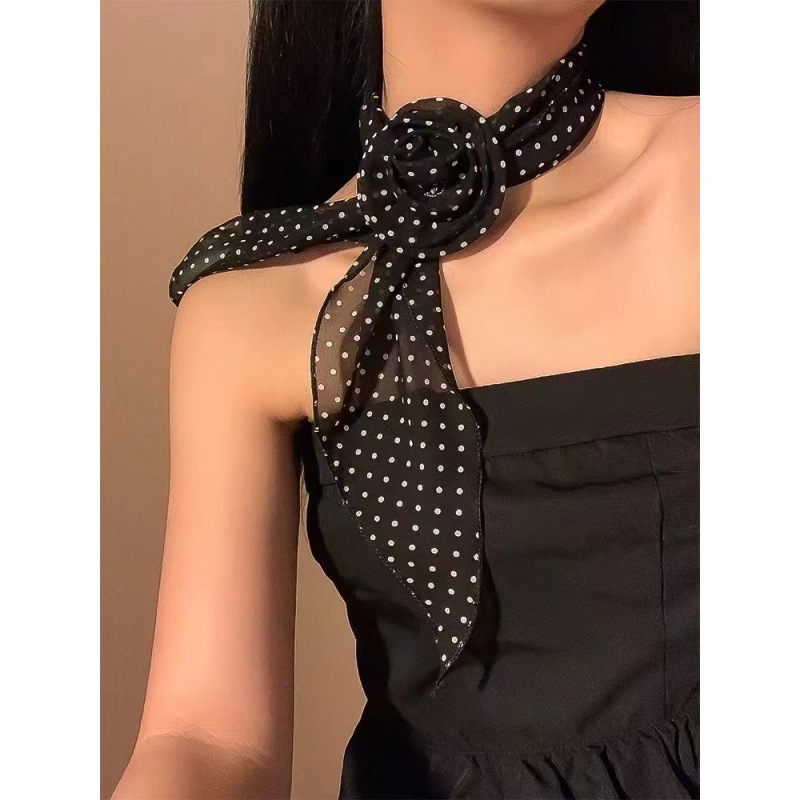 2025 한국식 폴도트 실크 스카프 목 밴드 타이 헤어 여성 고급 스카프 가을과 겨울 얇은 목 보호 스카프 긴 스트립