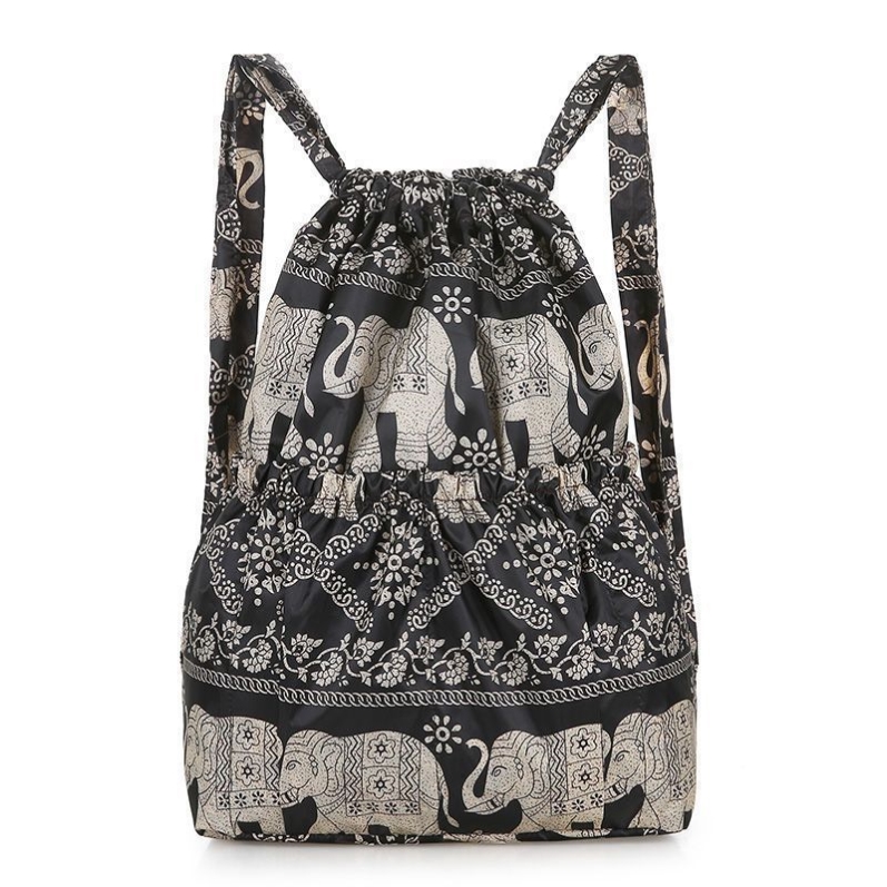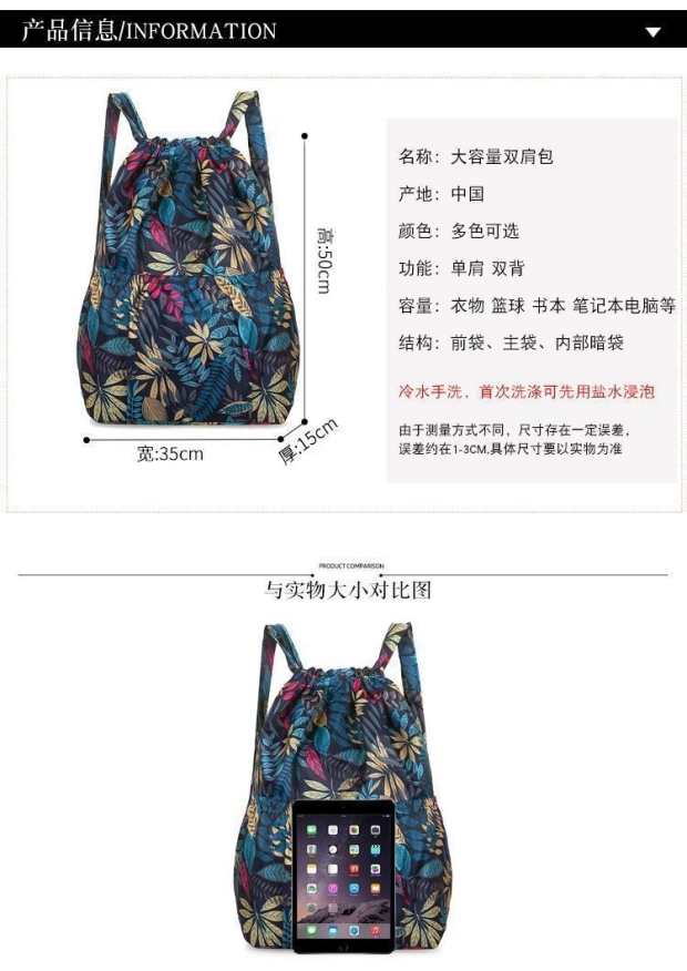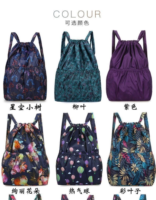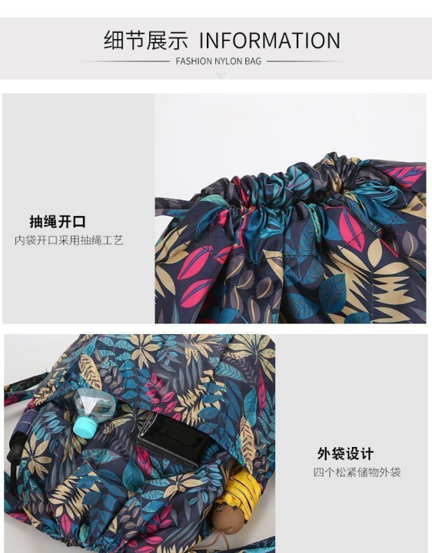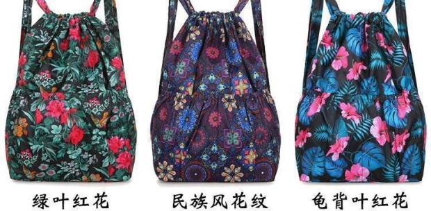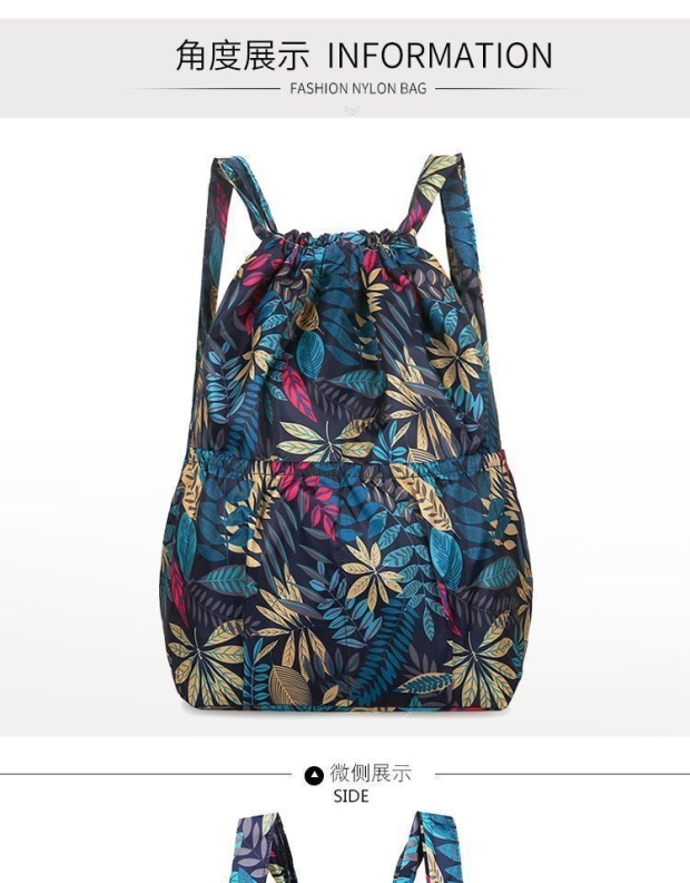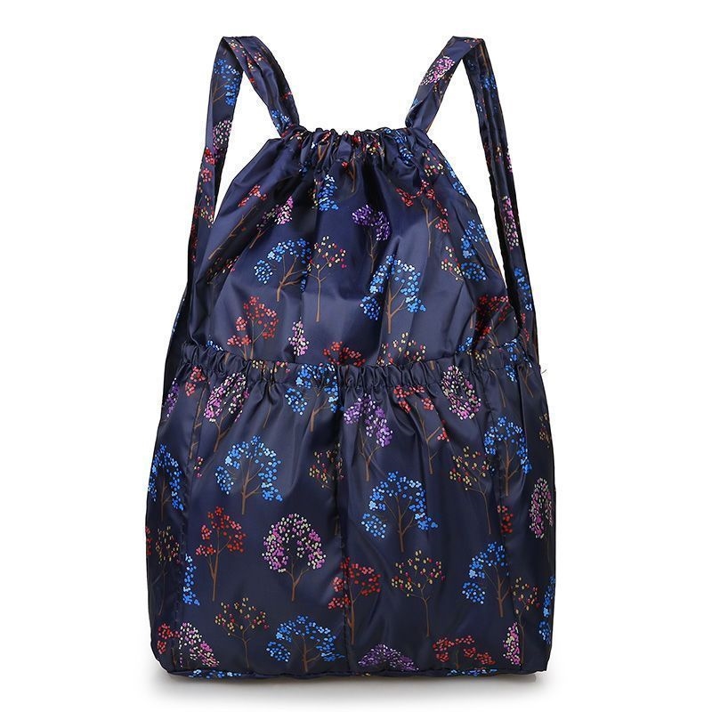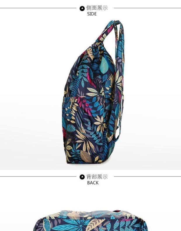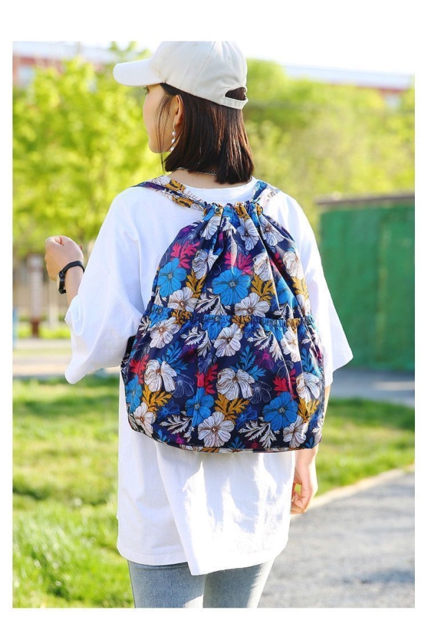 드로우 스트링 버킷 꽃 헝겊 가방 중년 노인 배낭 쇼핑백 편리한 가방 여성용 대용량 방수 배낭
