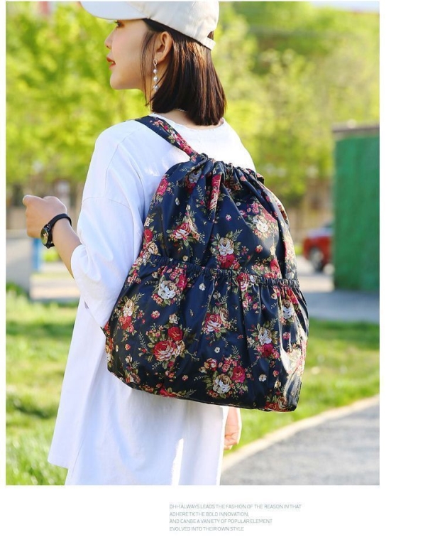 드로우 스트링 버킷 꽃 헝겊 가방 중년 노인 배낭 쇼핑백 편리한 가방 여성용 대용량 방수 배낭스토어 가기