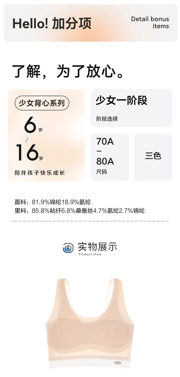 새 여아 속옷 개발 단계 초중학생 여중생 브래지어 큰 아이들 고정 안티 범프 노마크 소형 조끼스토어 가기