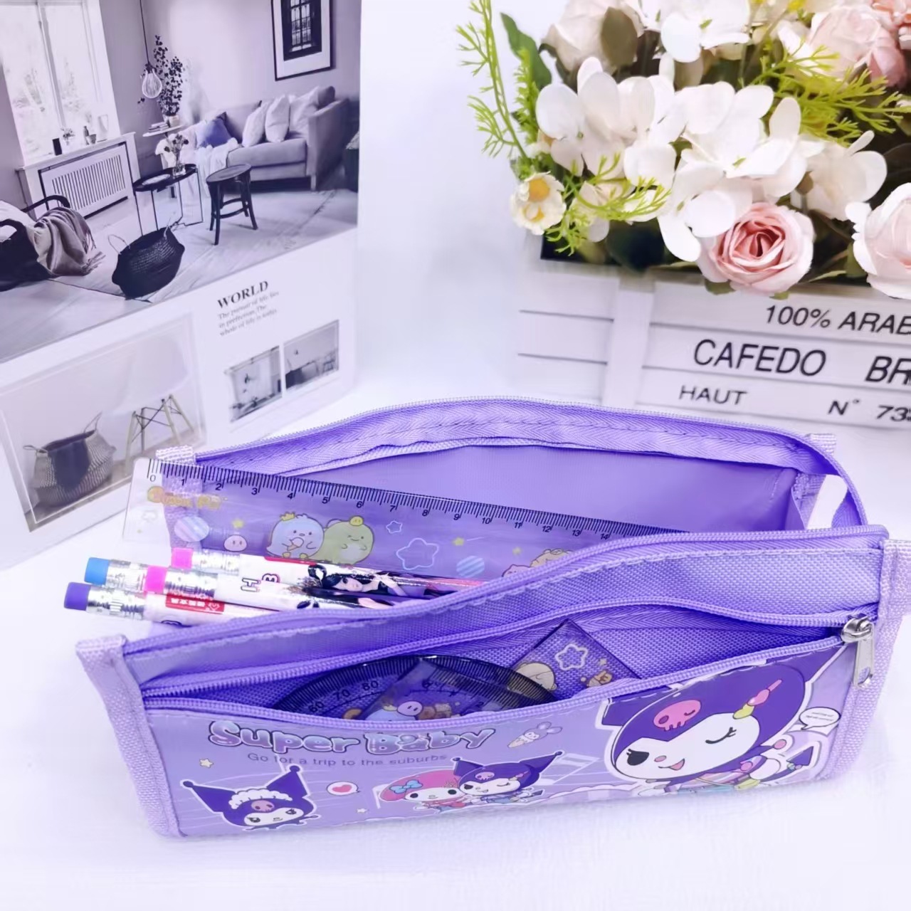 귀여운 Sanrio 보관 가방 멜로디 대용량 편지지 상자 새로운 만화 Kuromi 연필 가방 편지지 가방 도매스토어 가기
