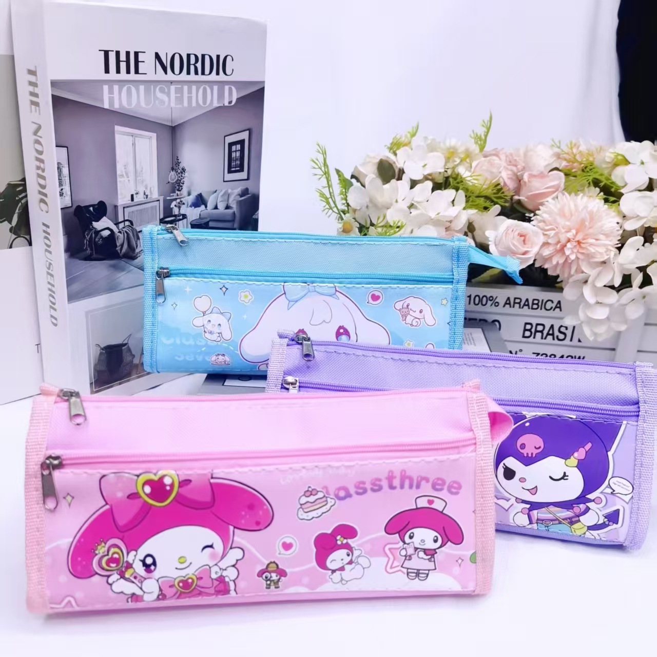 귀여운 Sanrio 보관 가방 멜로디 대용량 편지지 상자 새로운 만화 Kuromi 연필 가방 편지지 가방 도매