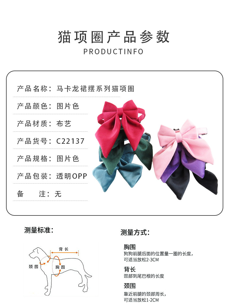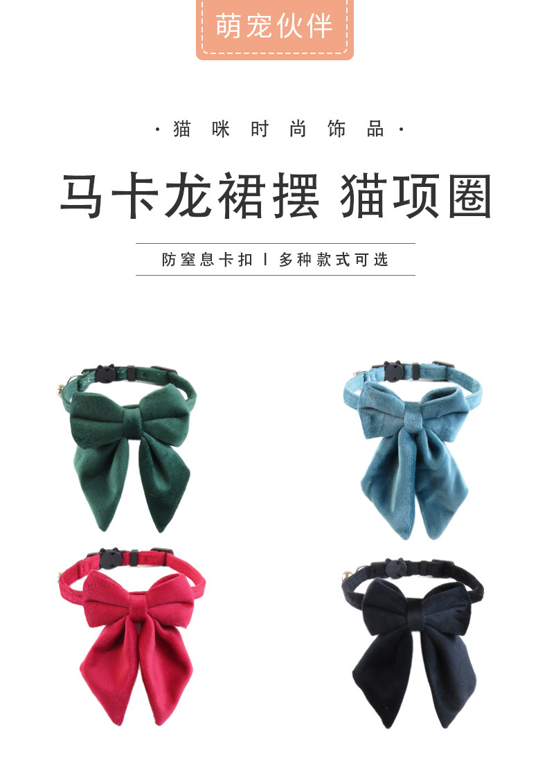 새로운 애완 동물 제품 마카롱 새로운 스타일 솔리드 컬러 고양이 칼라 벨 스커트 고양이 칼라
