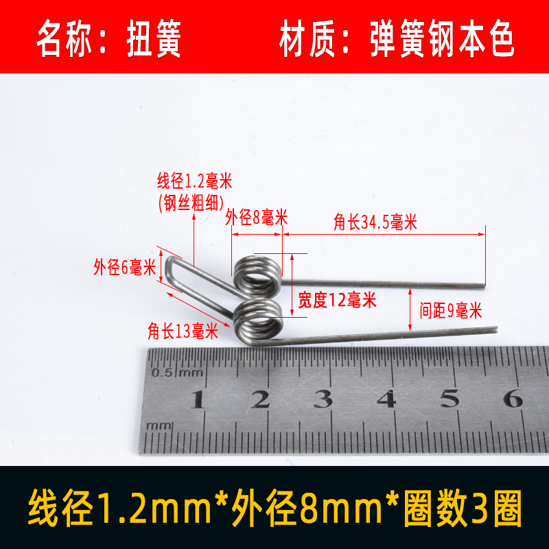 작은 봄 이중 비틀림 봄 스테인레스 스틸 클립 스틸 와이어 비틀림 90 도 회전 180V 타입 황 맞춤형 탄성 노란색