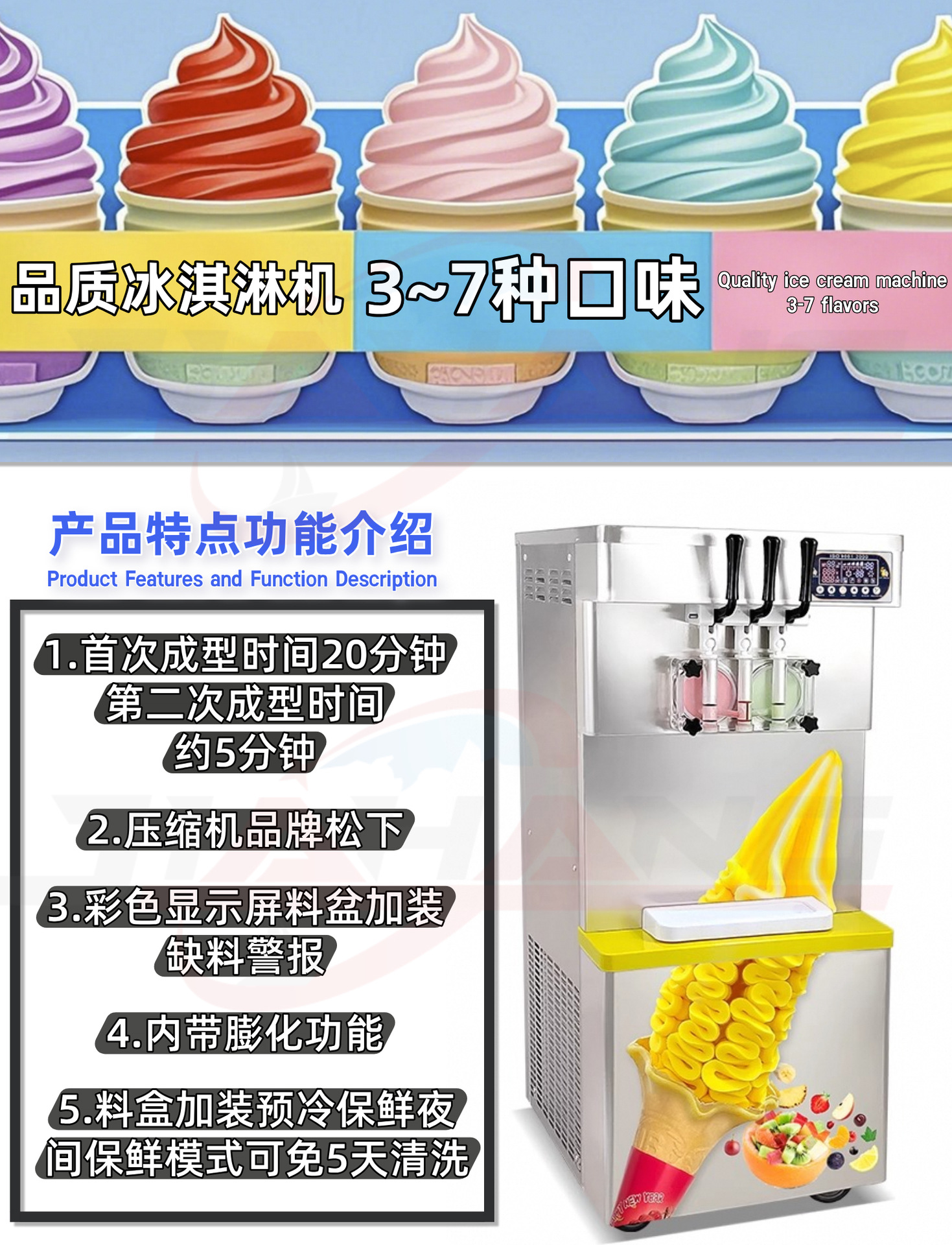 공장 직접 아이스크림 기계 상업 357 컬러 아이스크림 기계 국경 뜨거운 판매 수직 데스크탑 소프트 아이스크림 기계