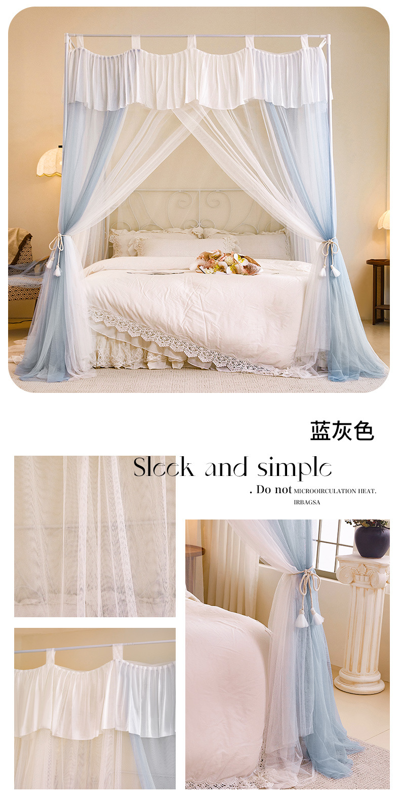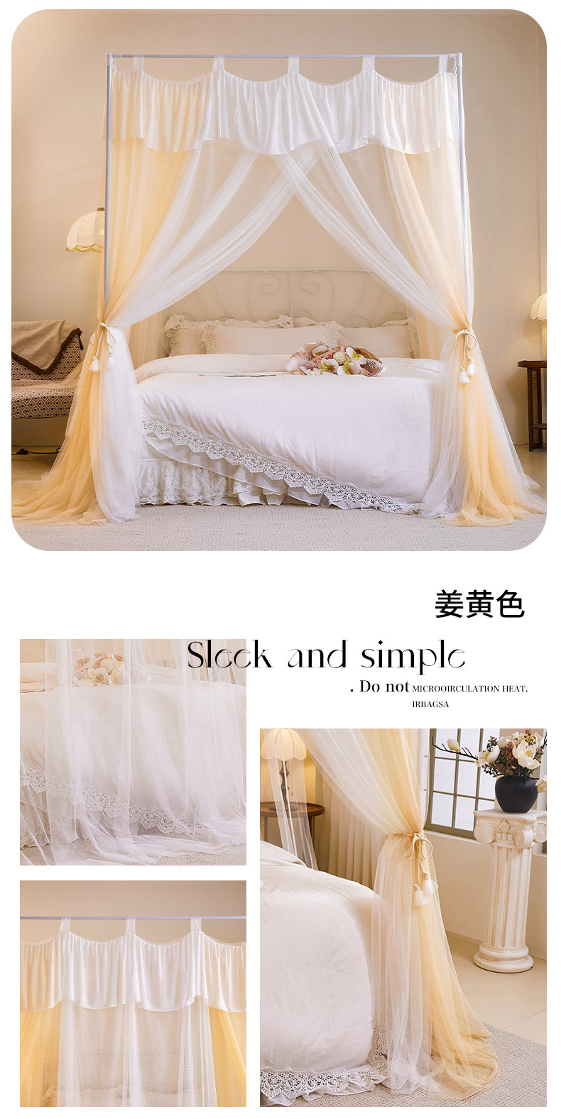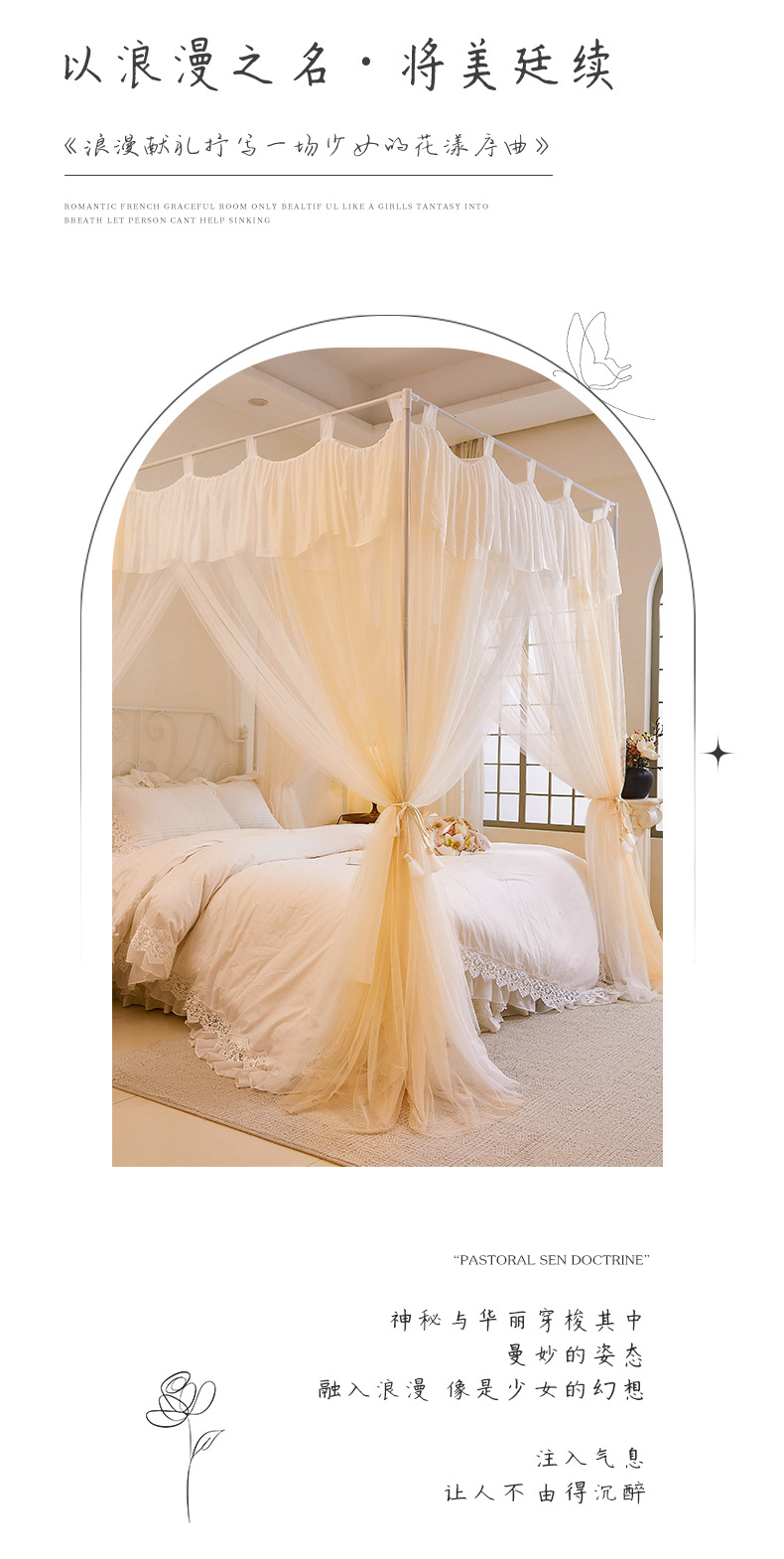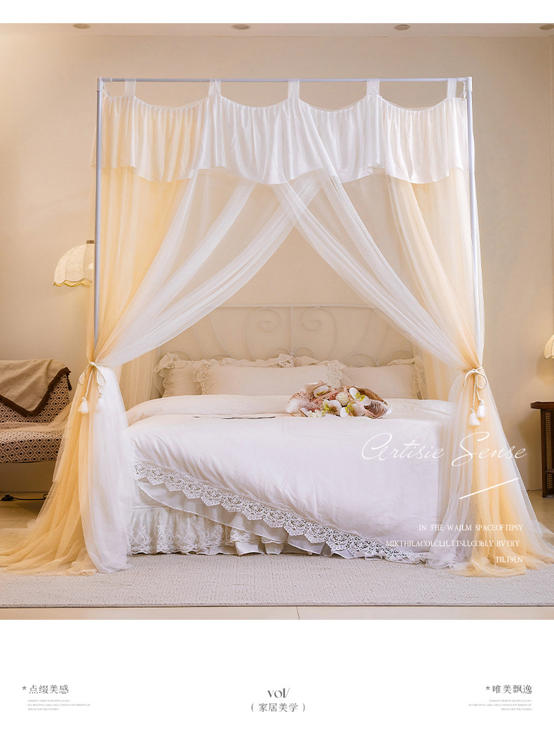 프랑스 층간 모기장 홈 침실 2025 새로운 고급 코트 침대 커튼 브래킷 두꺼운 패턴 계정스토어 가기