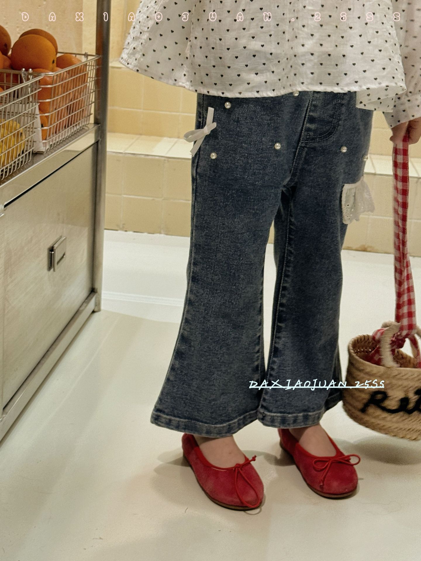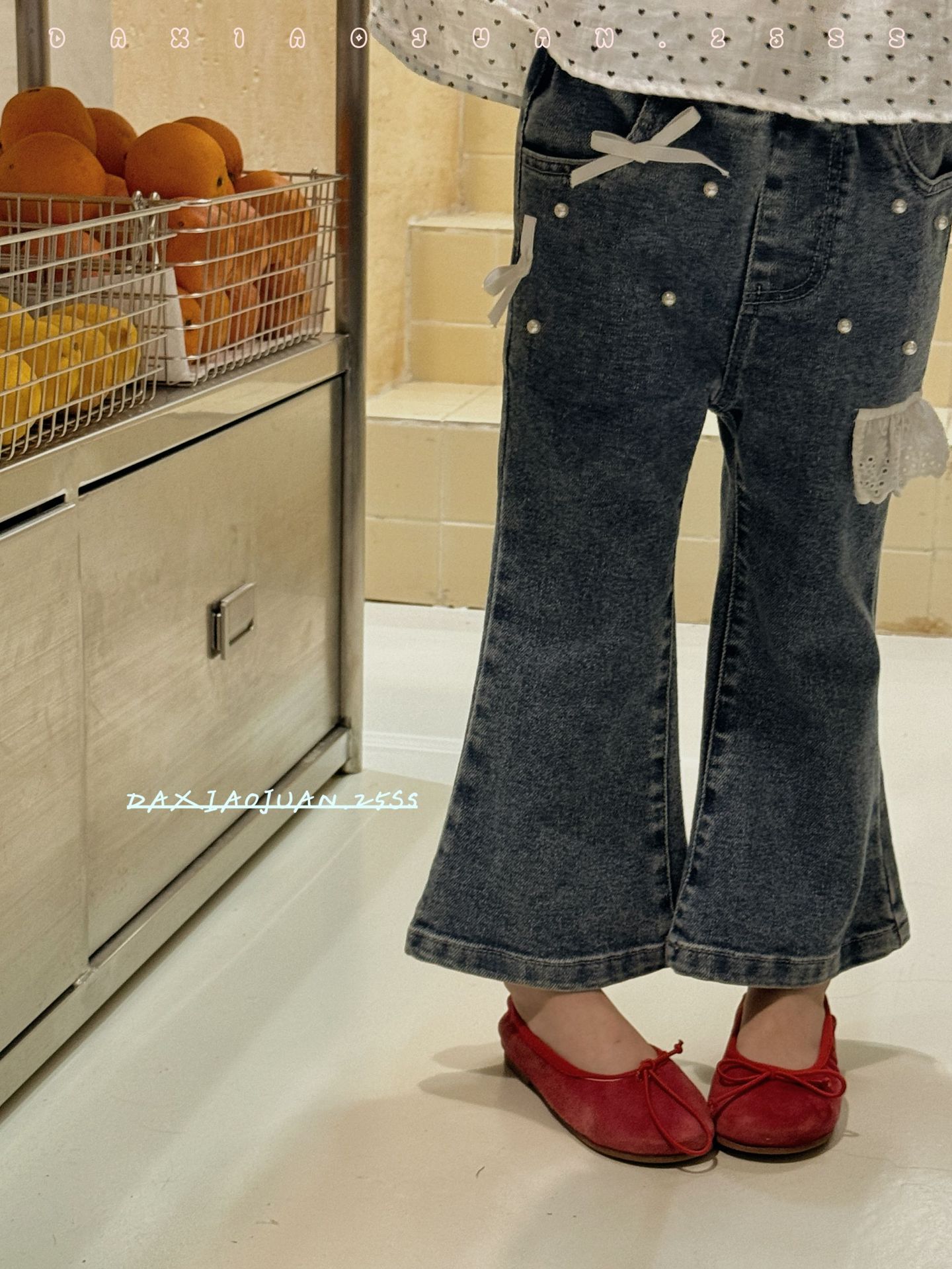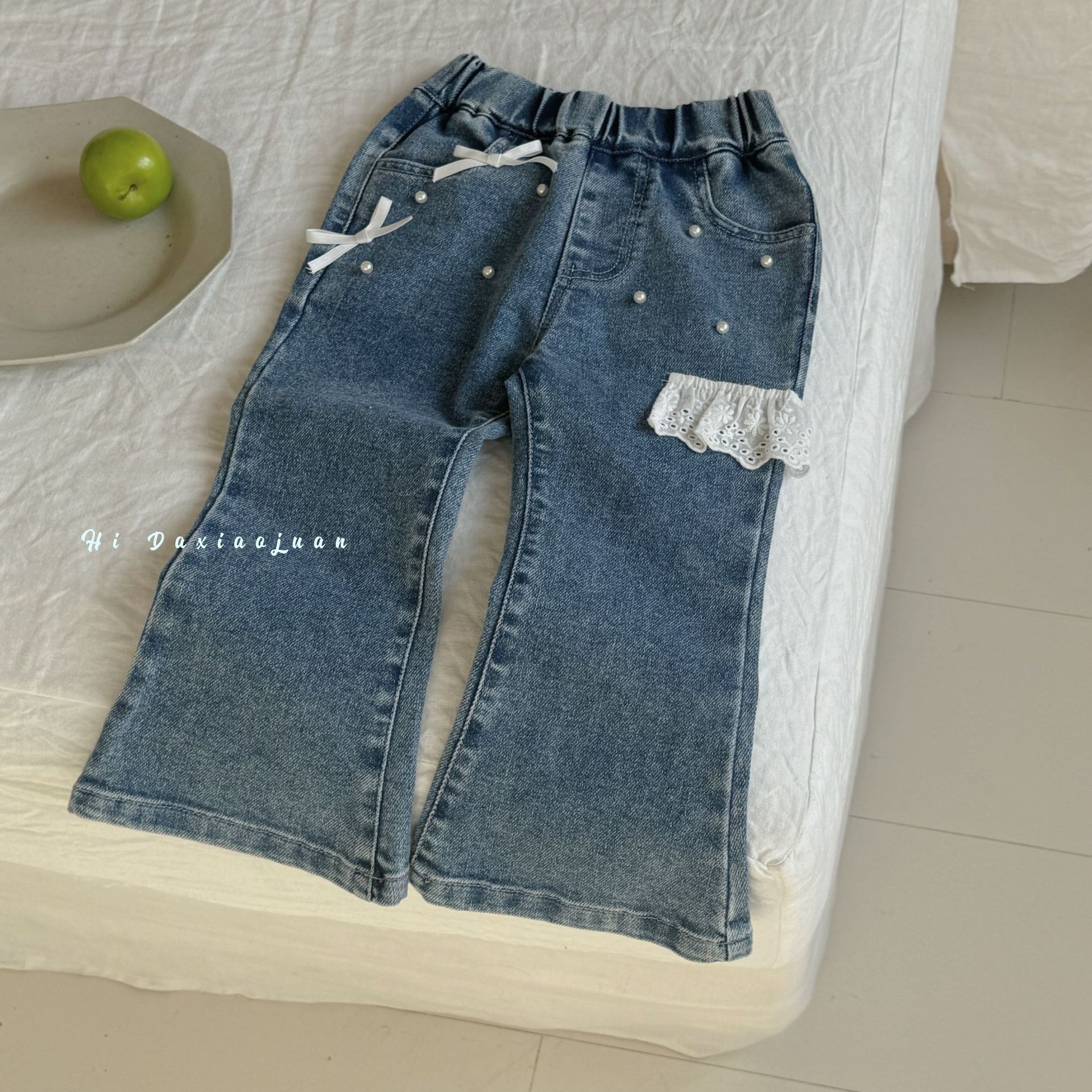 사이즈 롤 25 봄 새 한국식 소녀 서양식 진주 데님 바지 어린이 슬림핏 올매치 바지