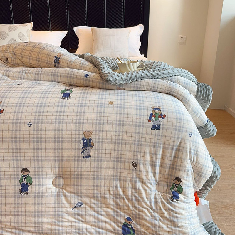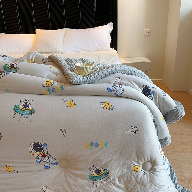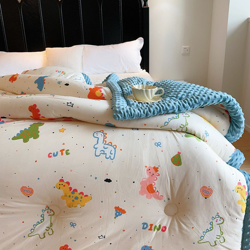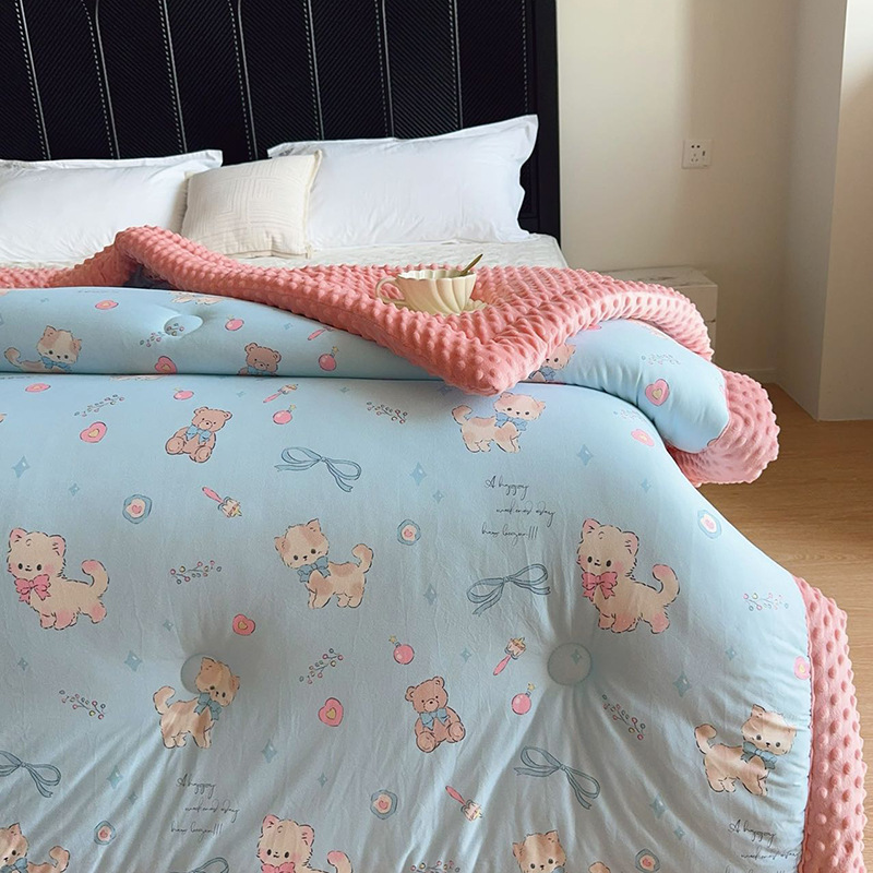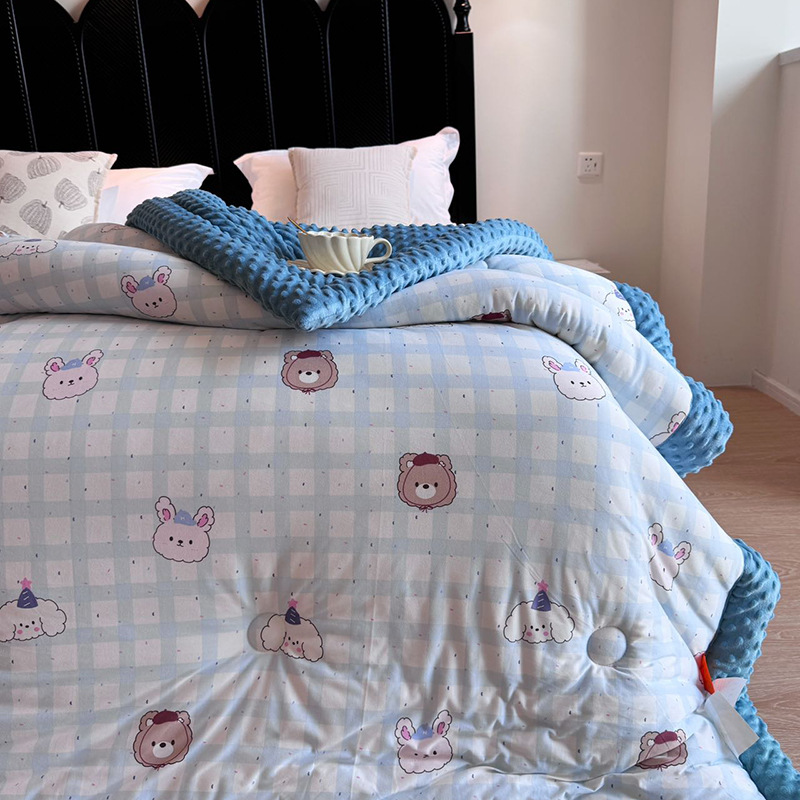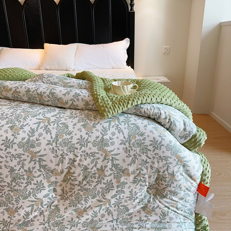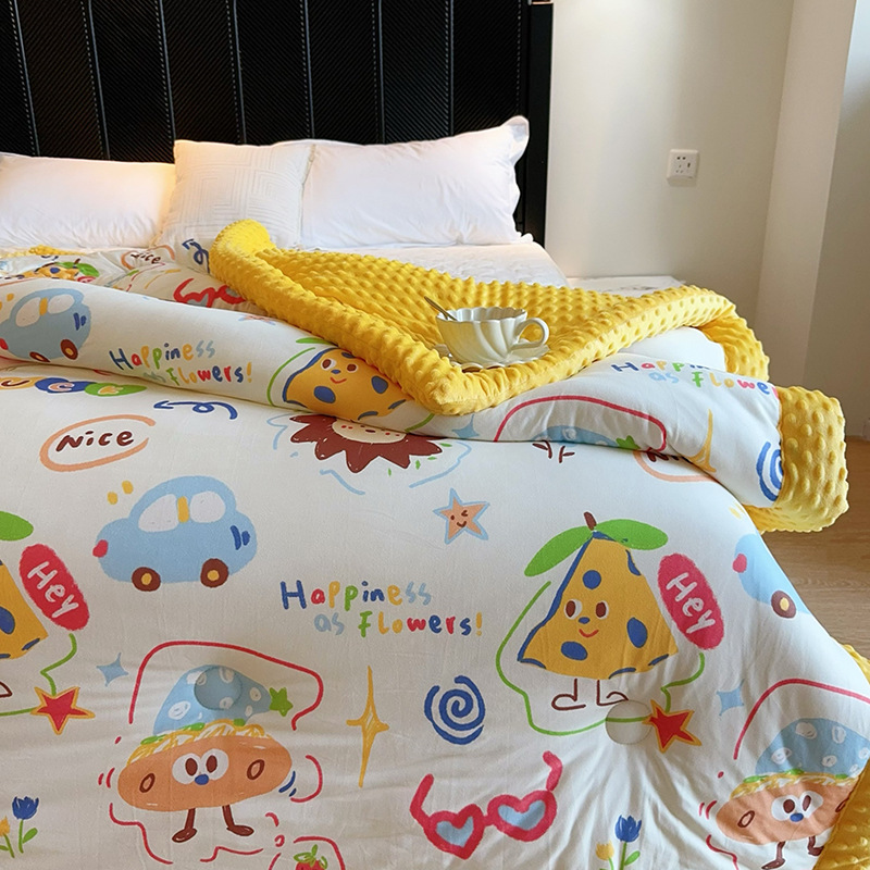 ⚠无需套被套,👉正面针织棉软糯的像棉花糖,贴身盖好舒服,反面立体颗粒豆豆绒,可直接盖,可机洗水洗,不变形结团。懒人福音呀!