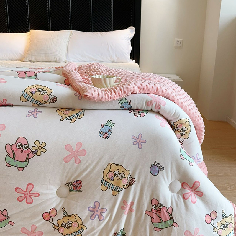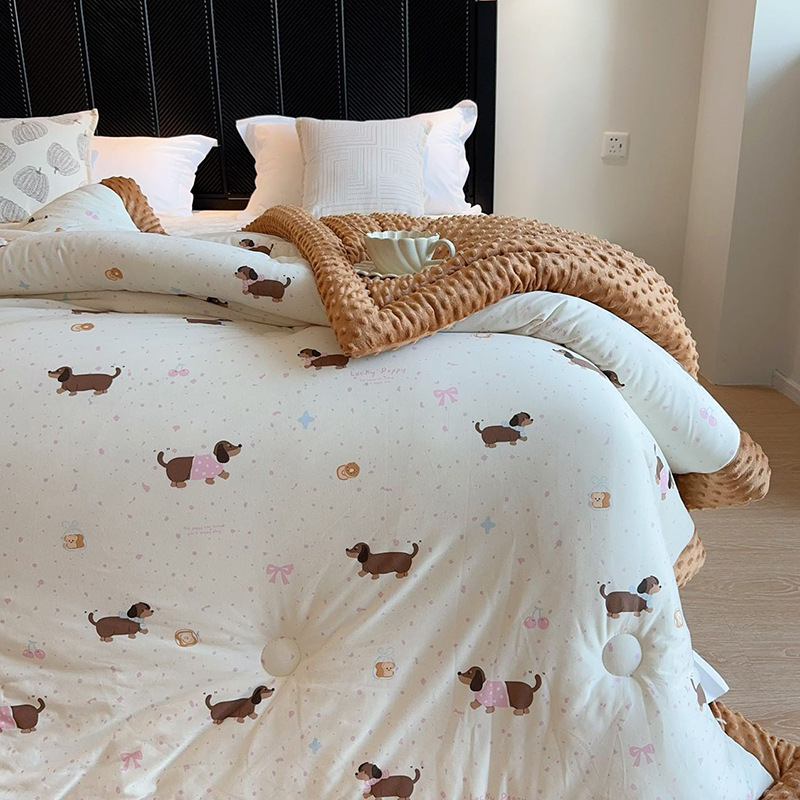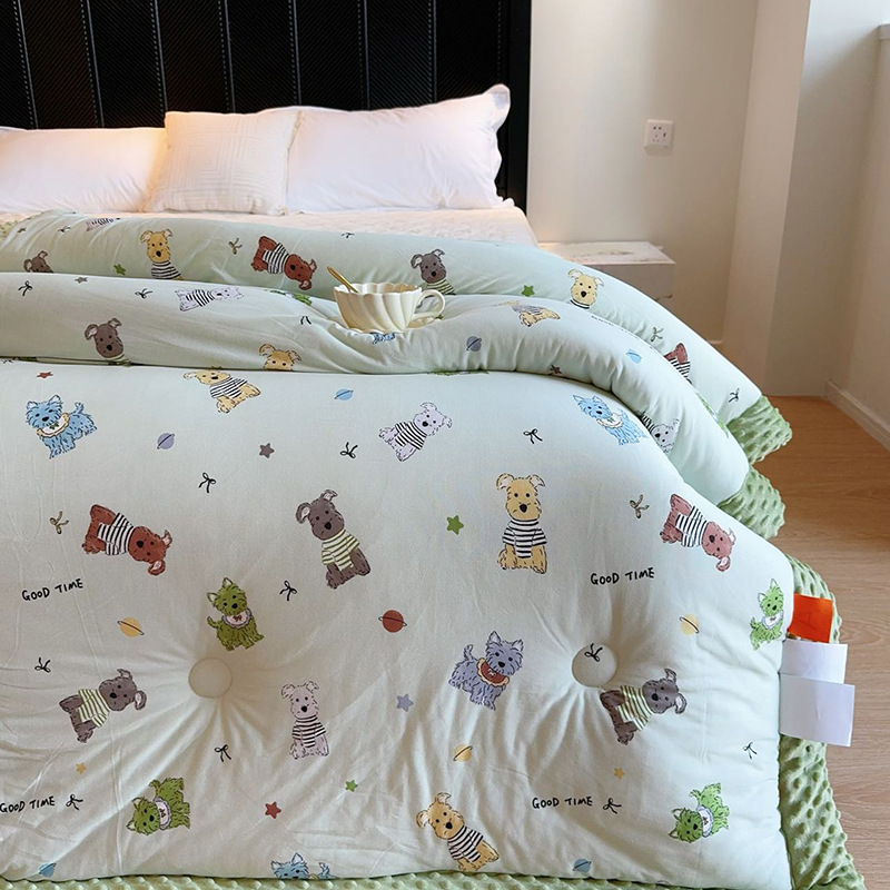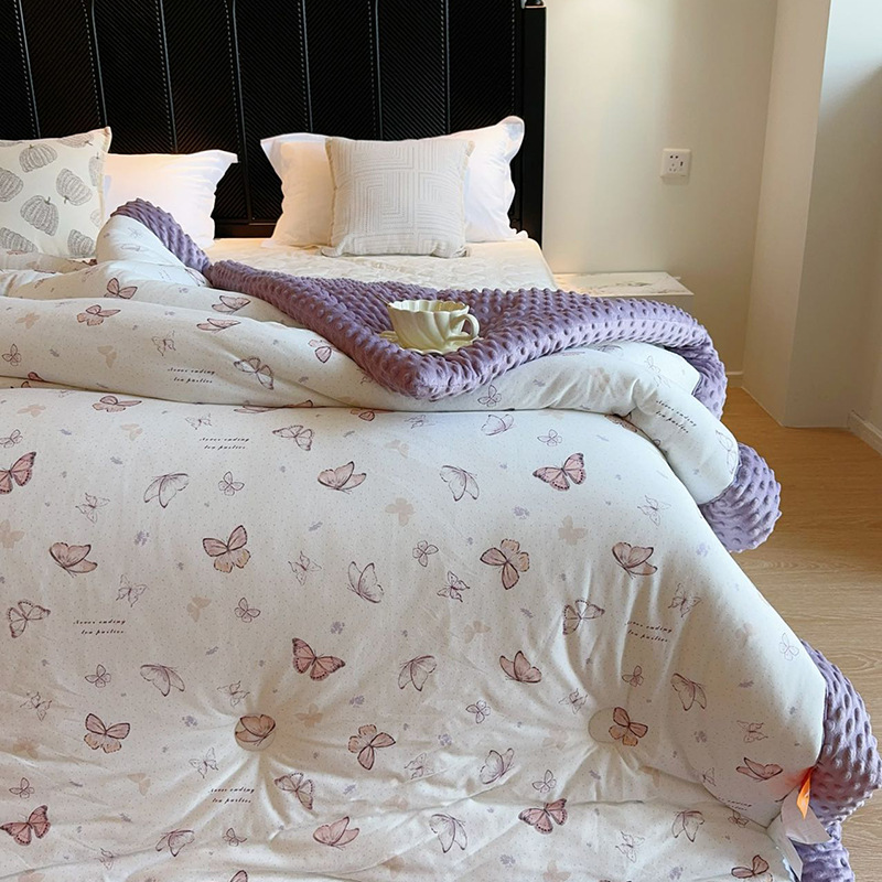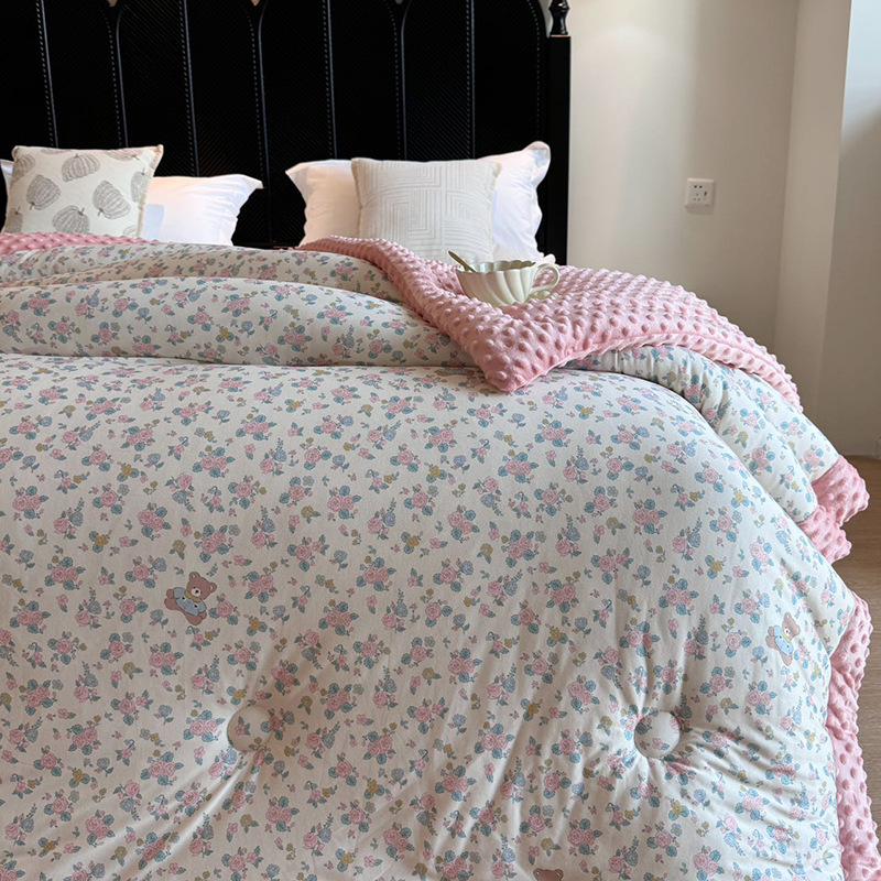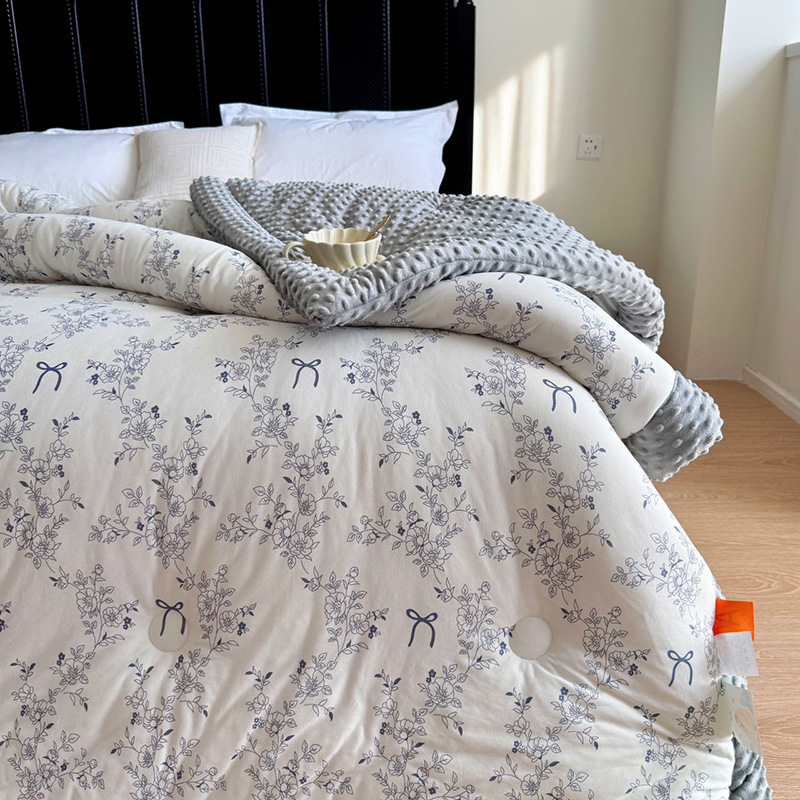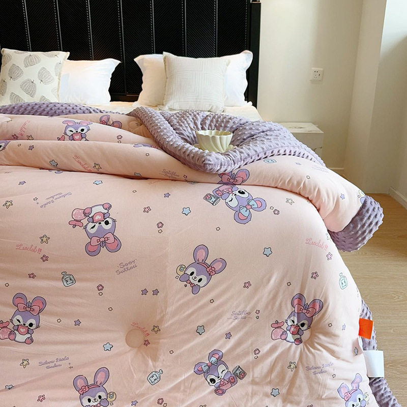 ⚠无需套被套,👉正面针织棉软糯的像棉花糖,贴身盖好舒服,反面立体颗粒豆豆绒,可直接盖,可机洗水洗,不变形结团。懒人福音呀!