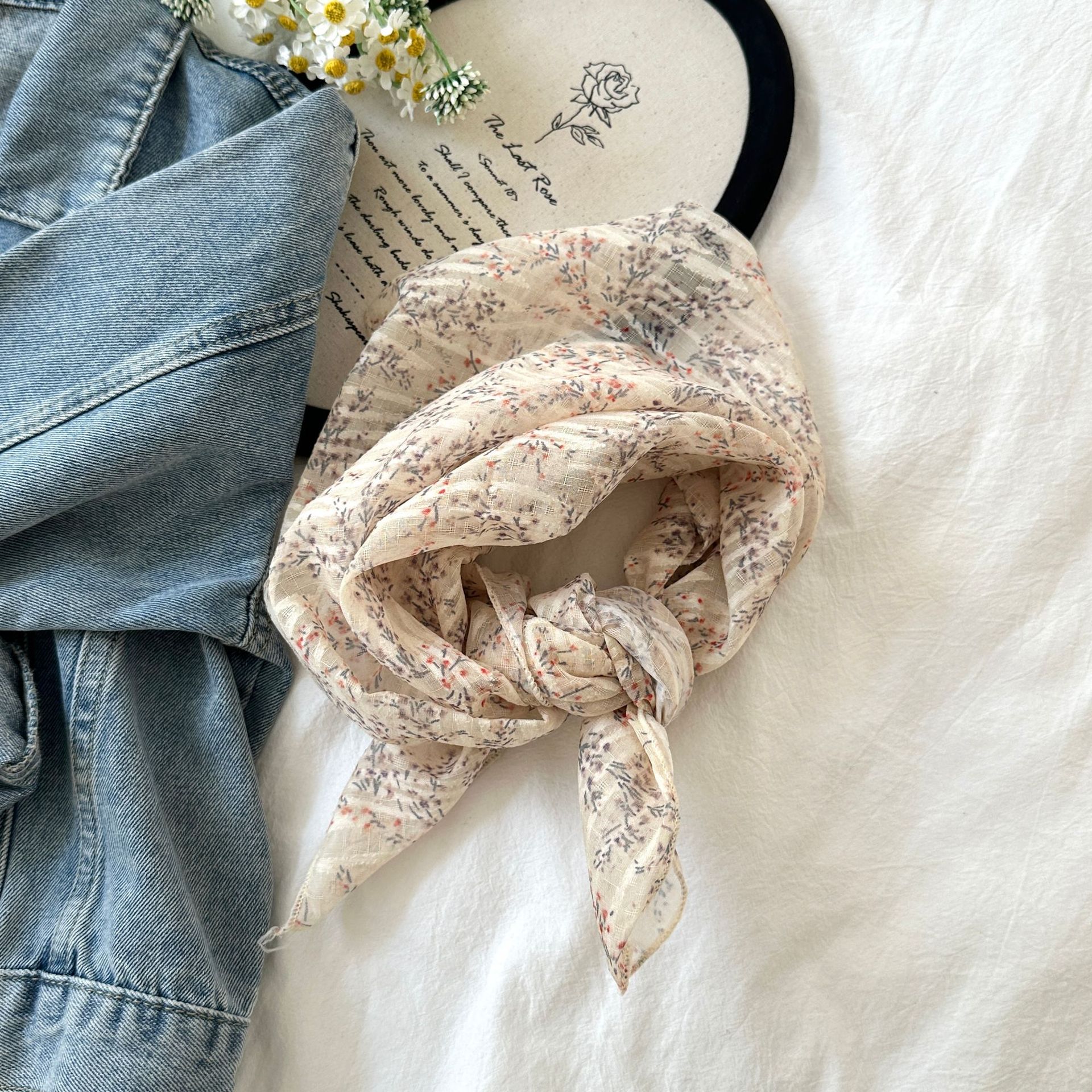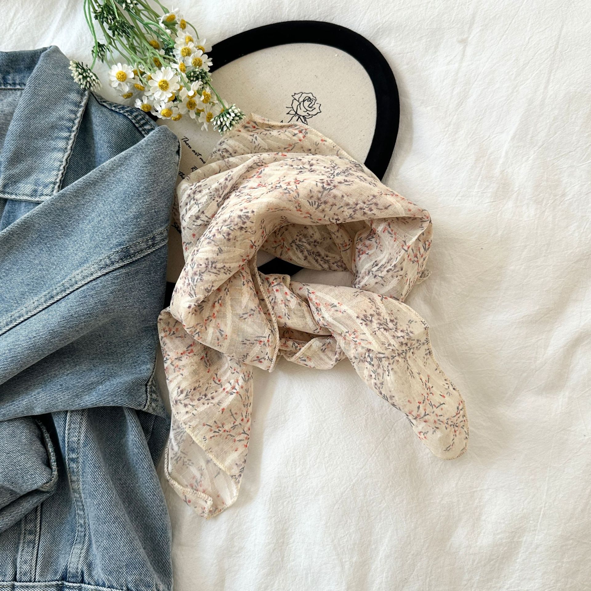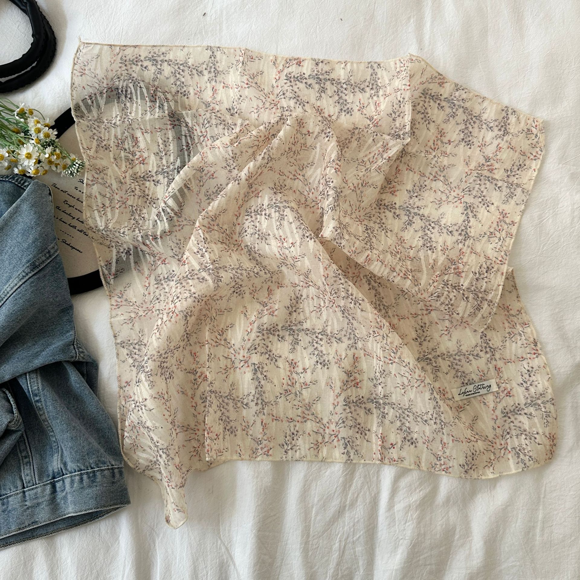 프랑스 목가적 스타일 면 및 리넨 꽃 광장 스카프 봄 얇은 스카프 레트로 소프트 스위트 스카프 한국식 올 매치 실크 스카프