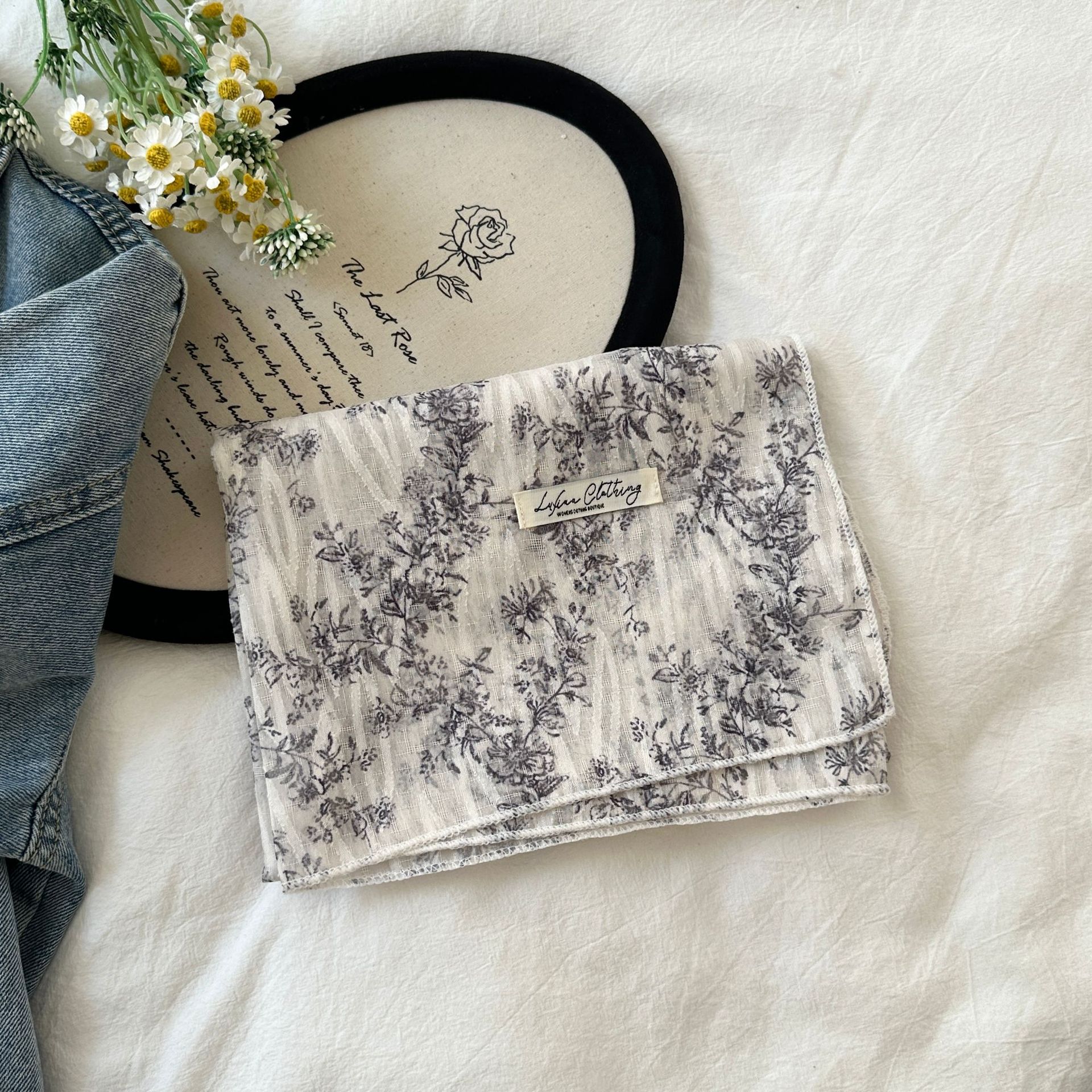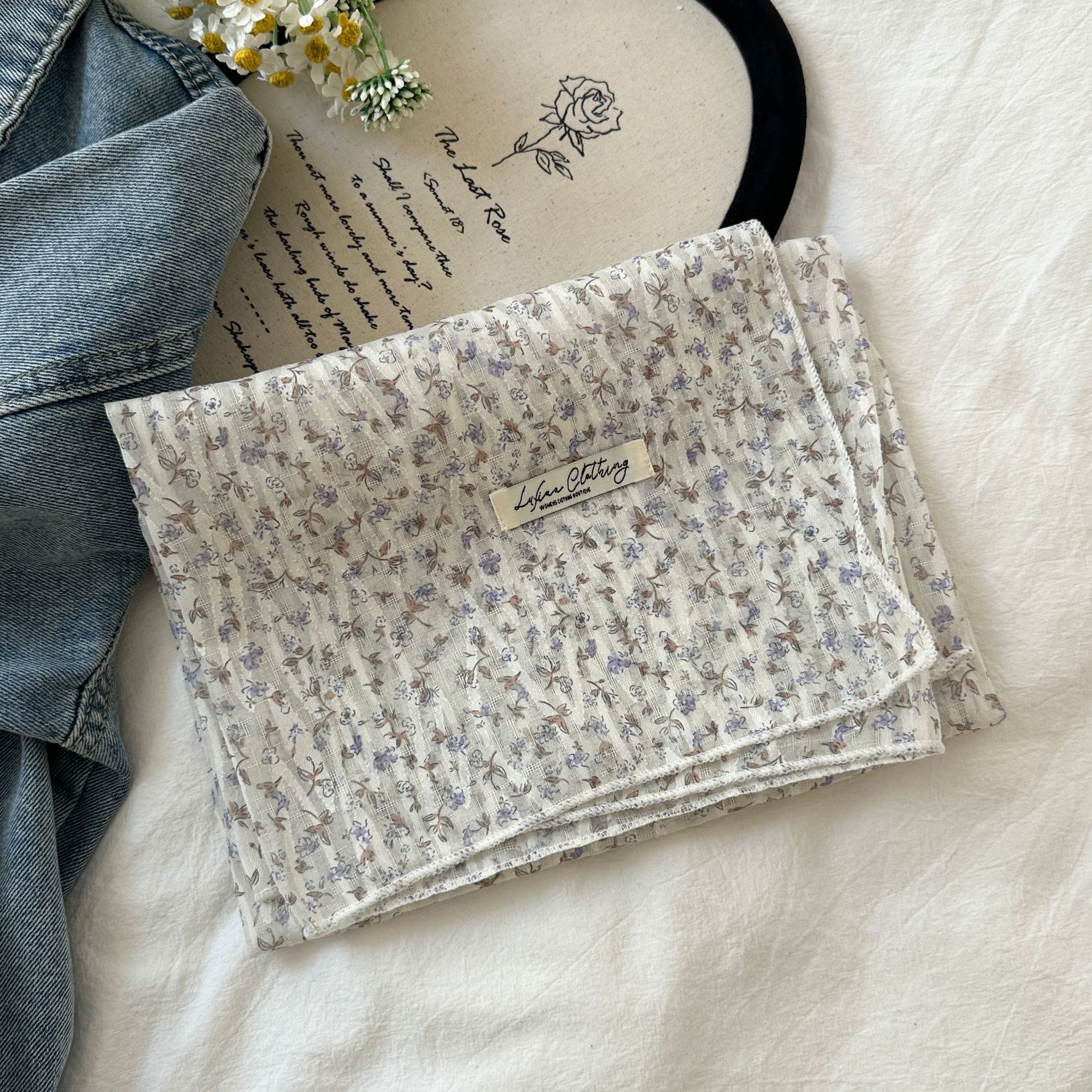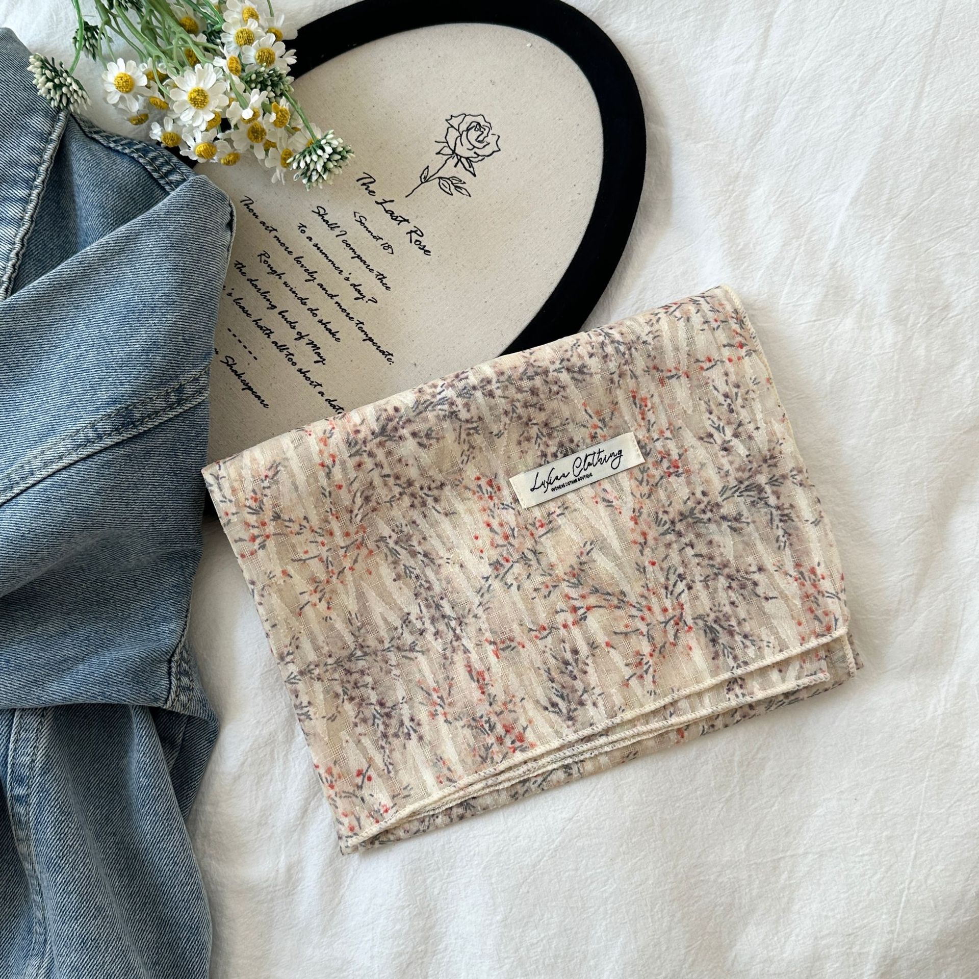 프랑스 목가적 스타일 면 및 리넨 꽃 광장 스카프 봄 얇은 스카프 레트로 소프트 스위트 스카프 한국식 올 매치 실크 스카프