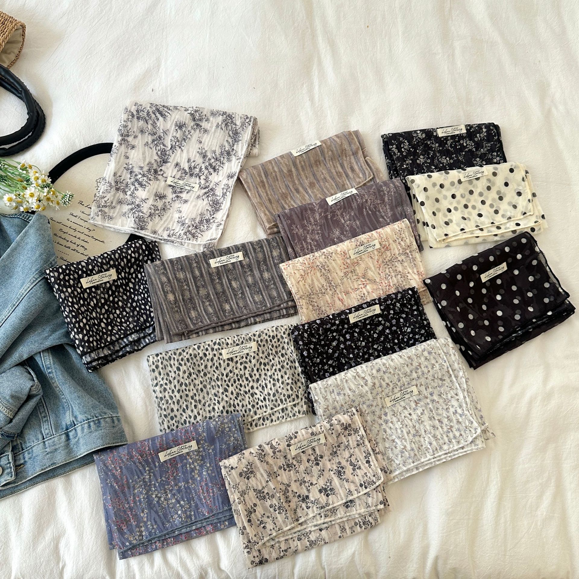 프랑스 목가적 스타일 면 및 리넨 꽃 광장 스카프 봄 얇은 스카프 레트로 소프트 스위트 스카프 한국식 올 매치 실크 스카프스토어 가기