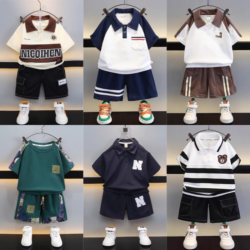남자들의 여름 2025 새로운 서양식 아기 인터넷 인기있는 멋진 스포츠 옷 어린이 잘 생긴 캐주얼 반팔 세트스토어 가기