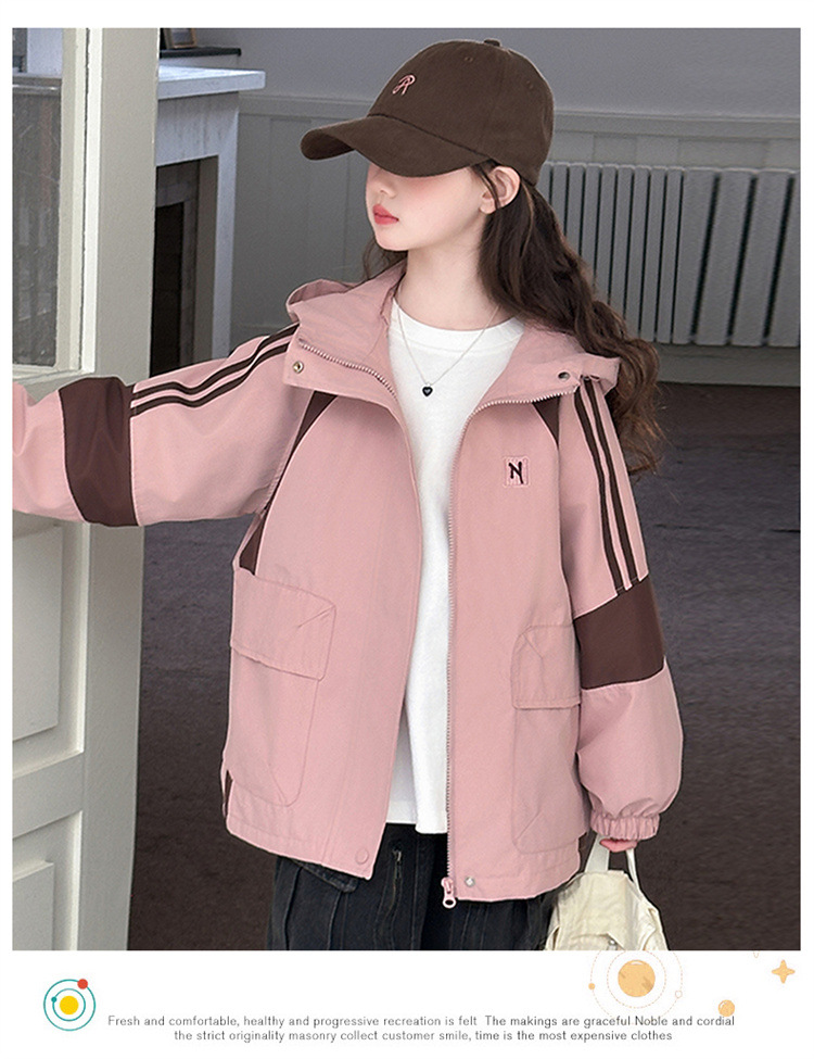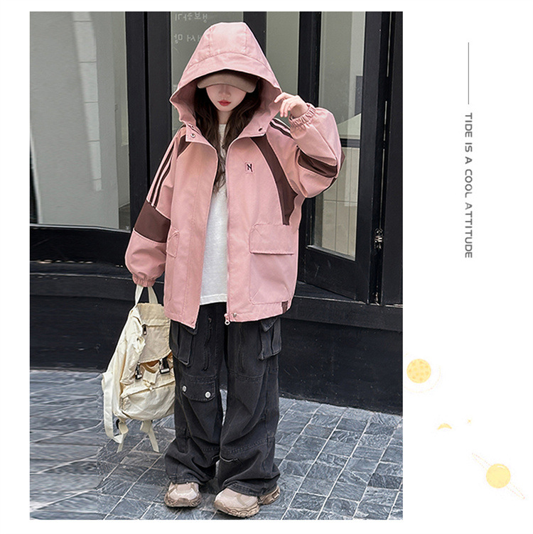여아용 재킷, 봄 가을용 2025년 신상, 큰 아이들용 패셔너블한 후드 재킷, 가을옷스토어 가기