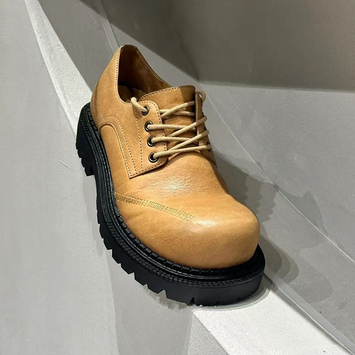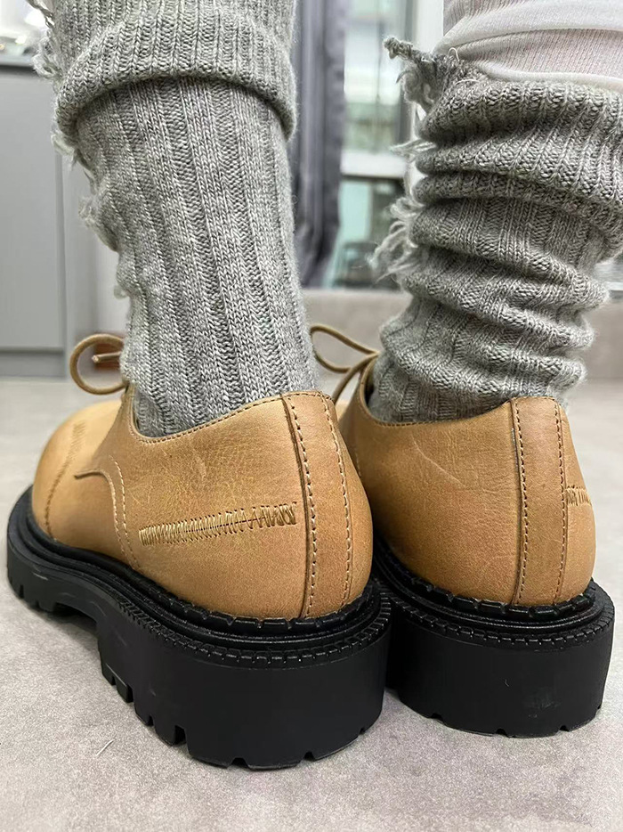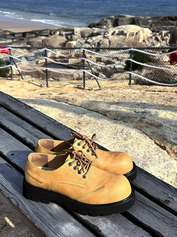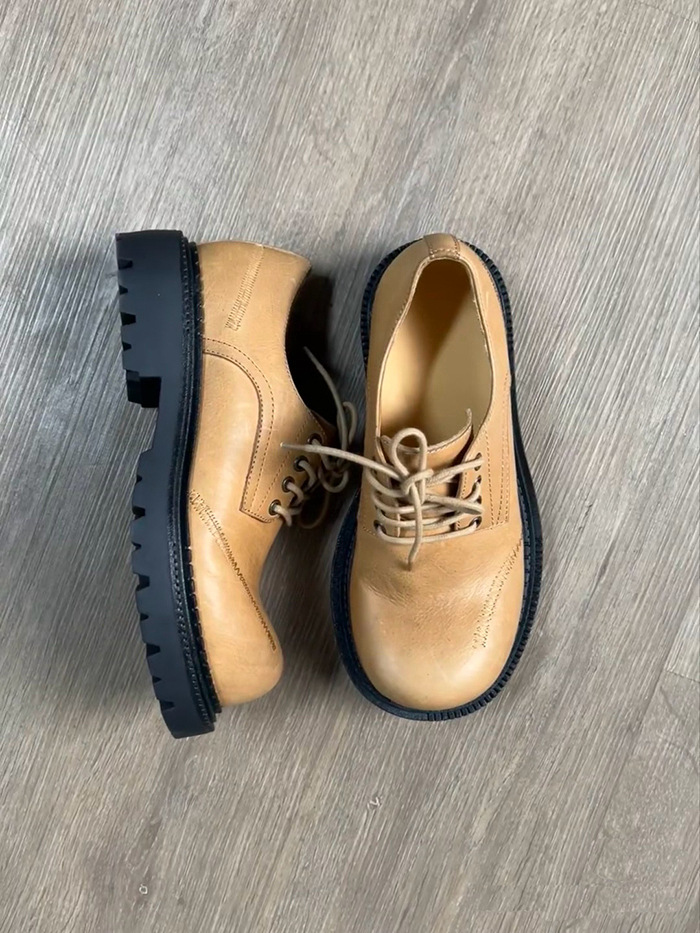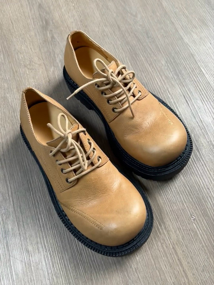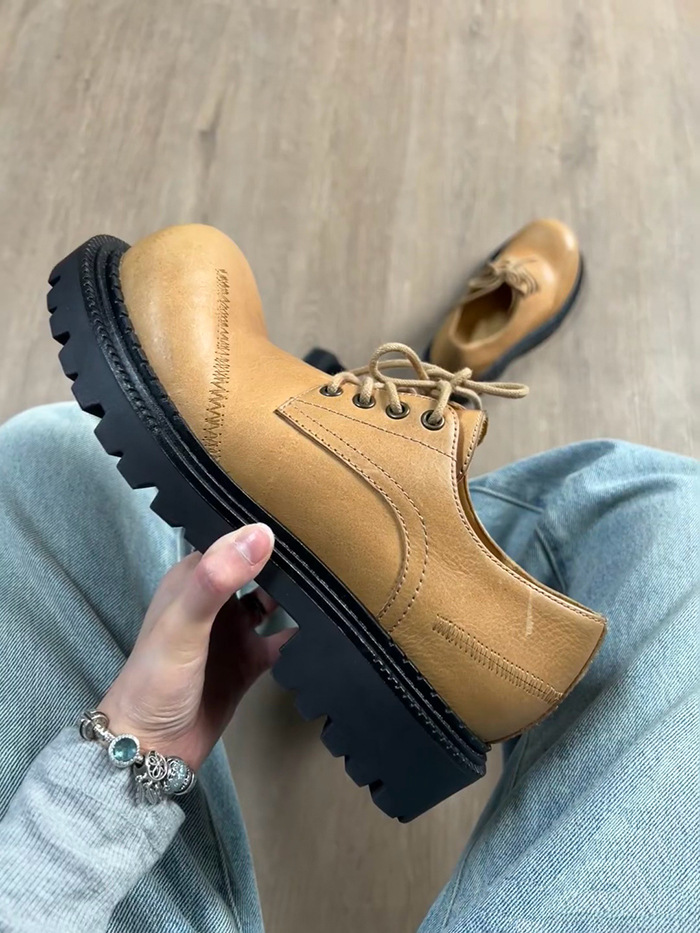 작은 가죽 신발 여성의 두꺼운 단독 상승 2025 새로운 봄과 가을 패션 큰 머리 레이스 업 레트로 영국 스타일 Lefu 싱글 레이어 신발스토어 가기